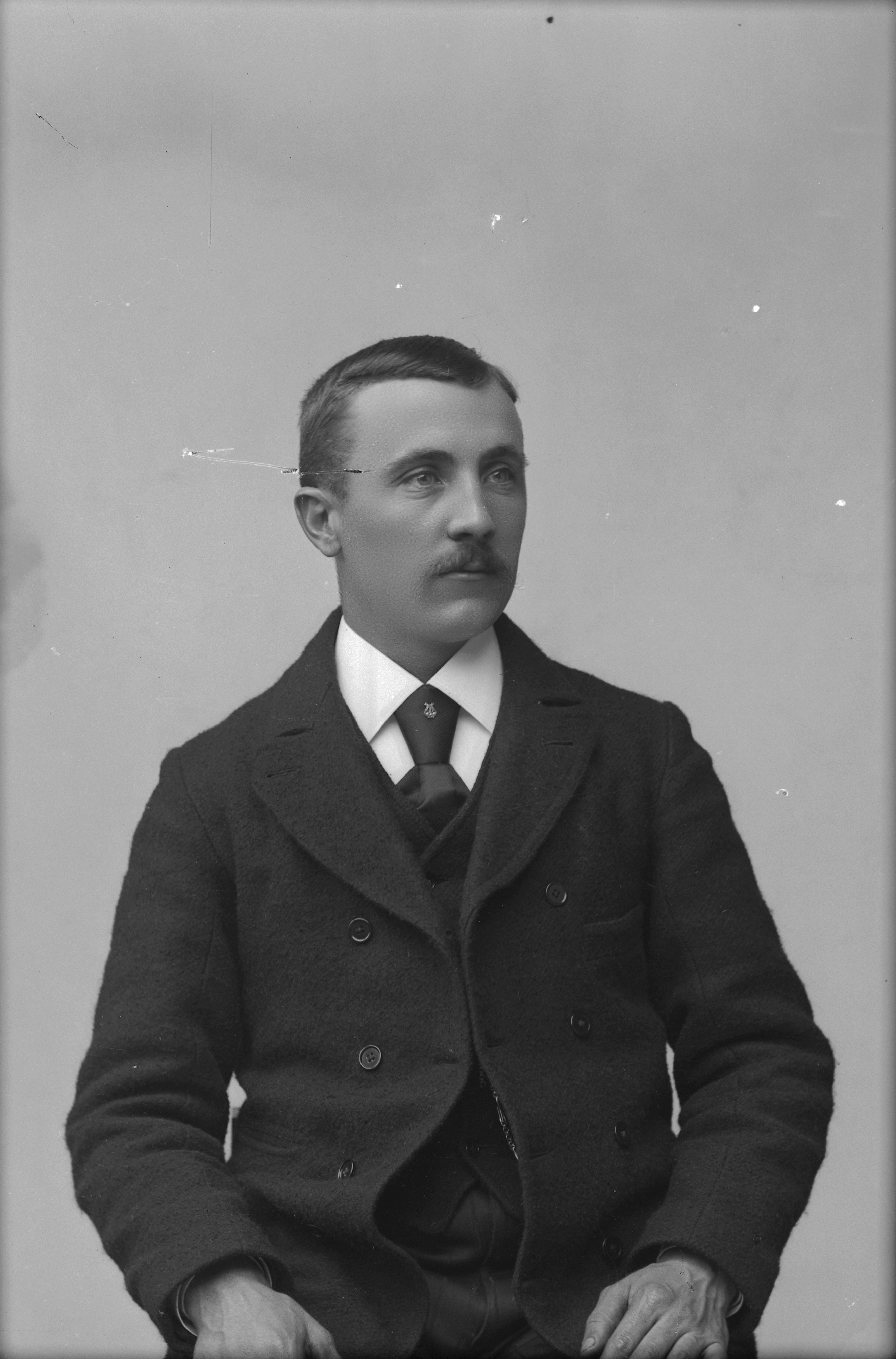 Beskrivning: Porträtt i halvfigur av sjömannen Martin Nilsson.