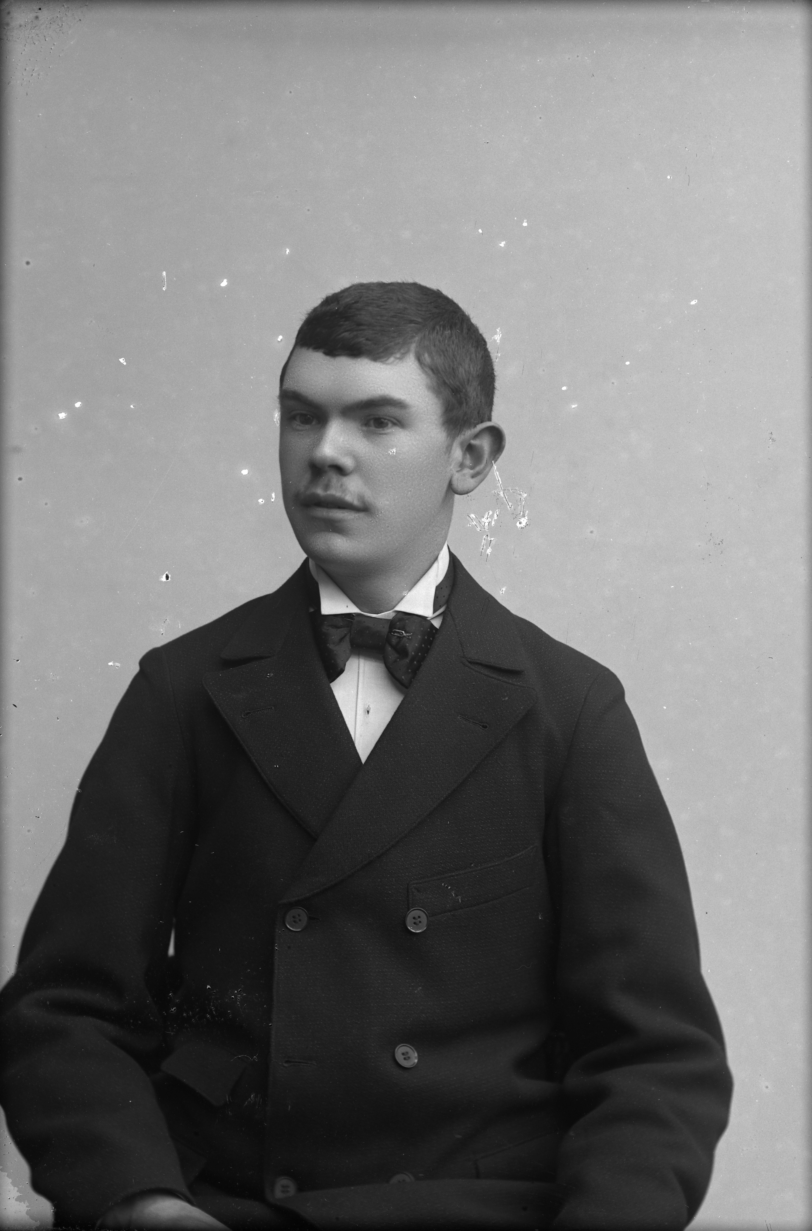 Beskrivning: Porträtt i halvfigur av F. P. Petersson /Kävlinge.