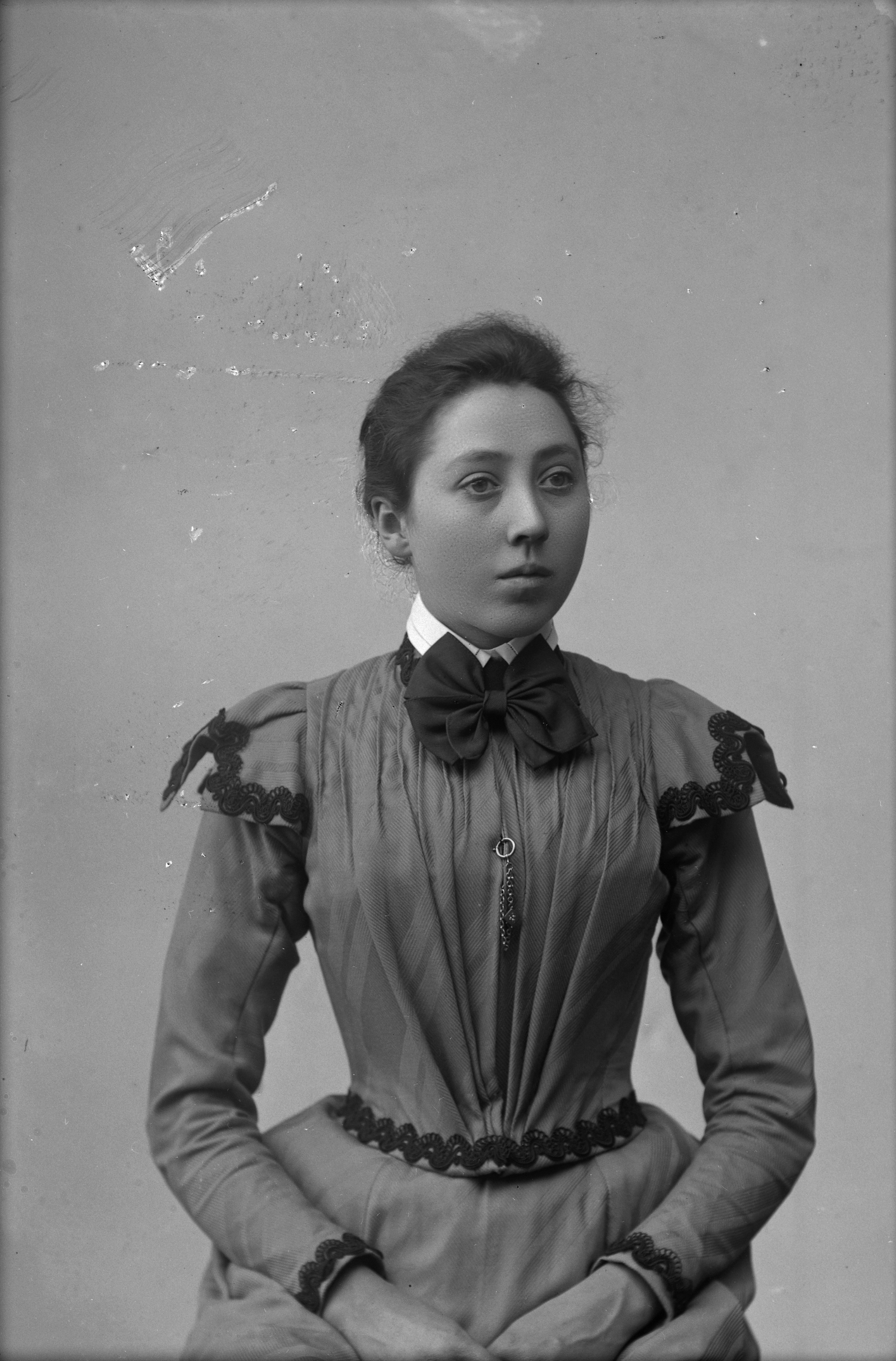 Beskrivning: Porträtt i halvfigur av Carolina Persson.
