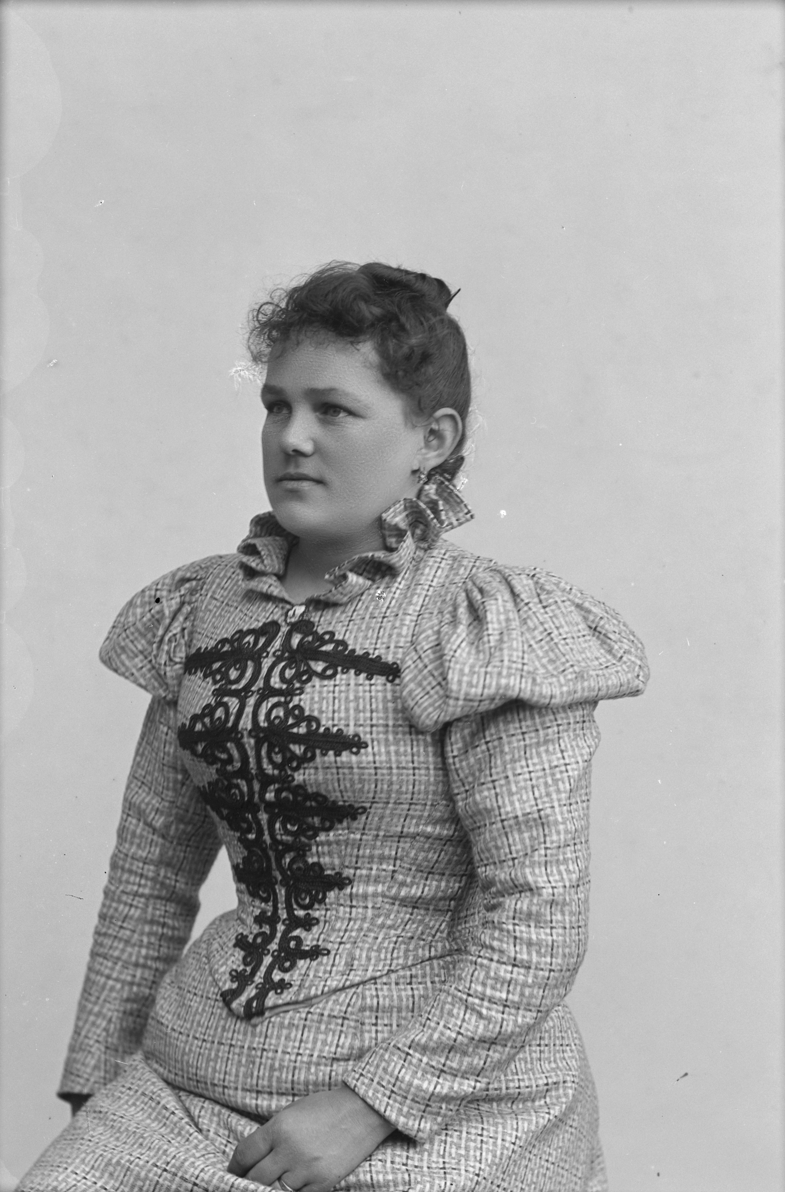 Beskrivning: Porträtt i halvfigur av Hildur Högman.