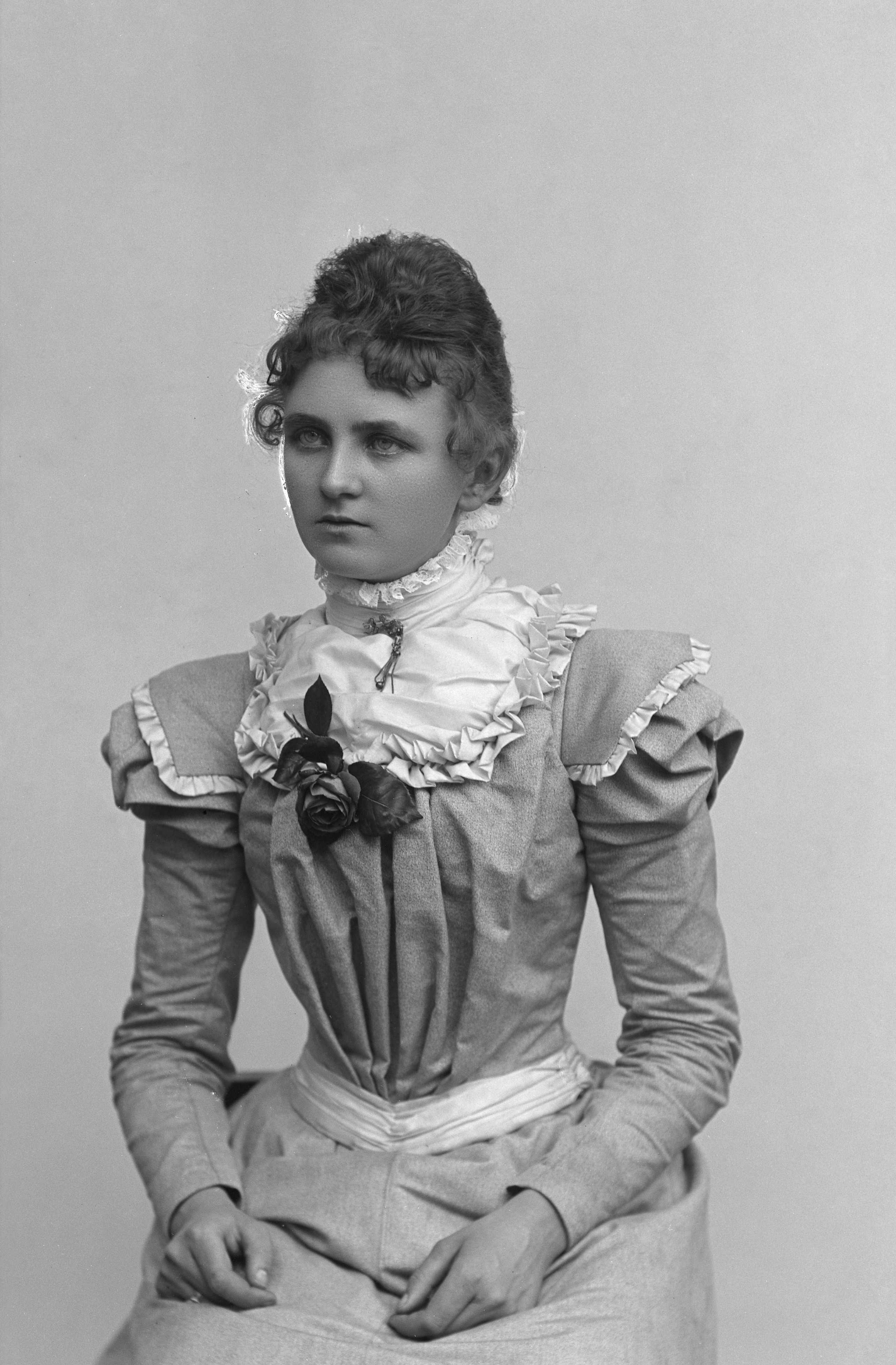 Beskrivning: Porträtt i halvfigur av Elvira Elander.