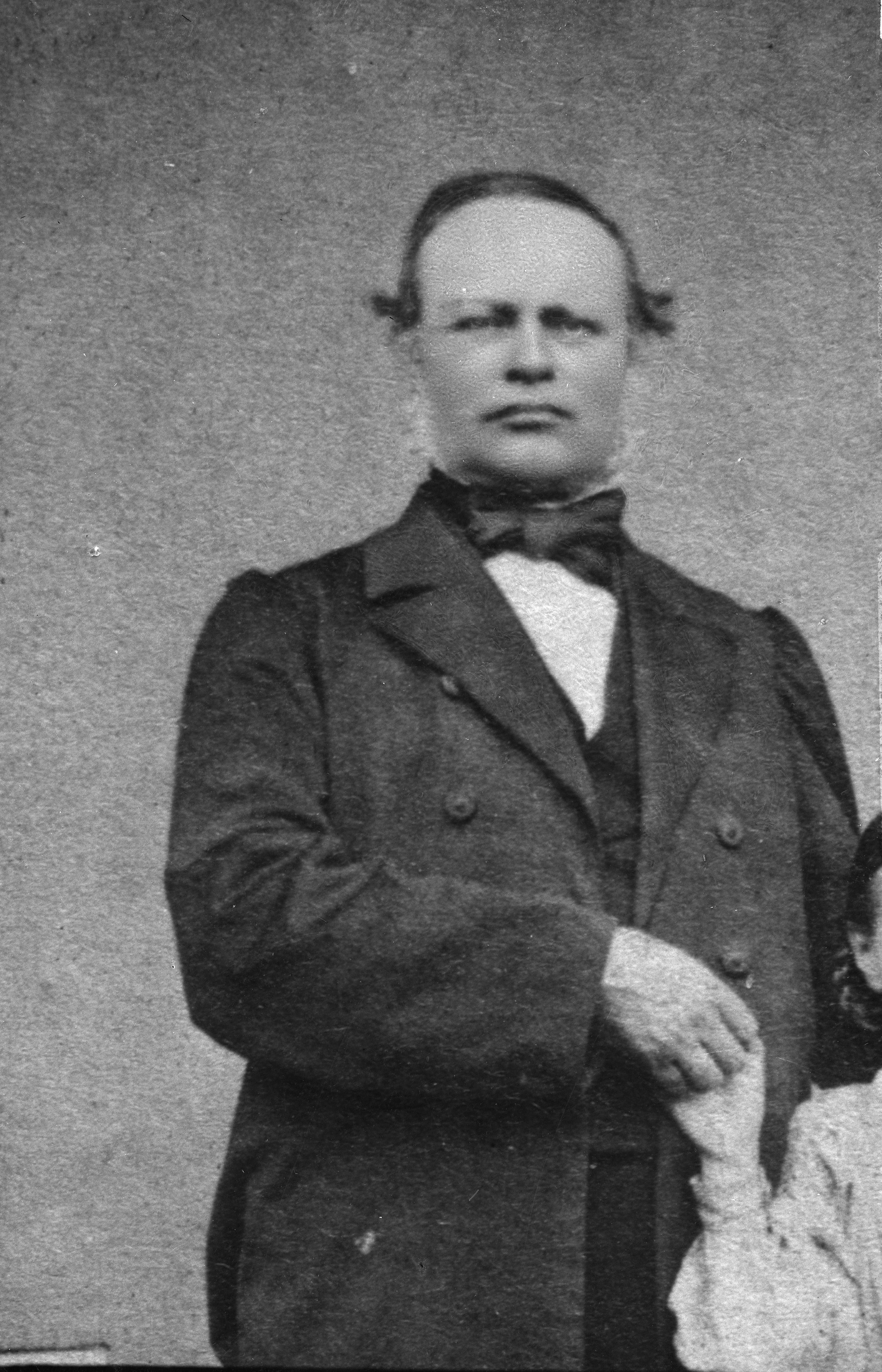 Beskrivning: Porträtt i helfigur av oidentifierad man. Reprofotografi beställt av apotekare Isidor Nordin.