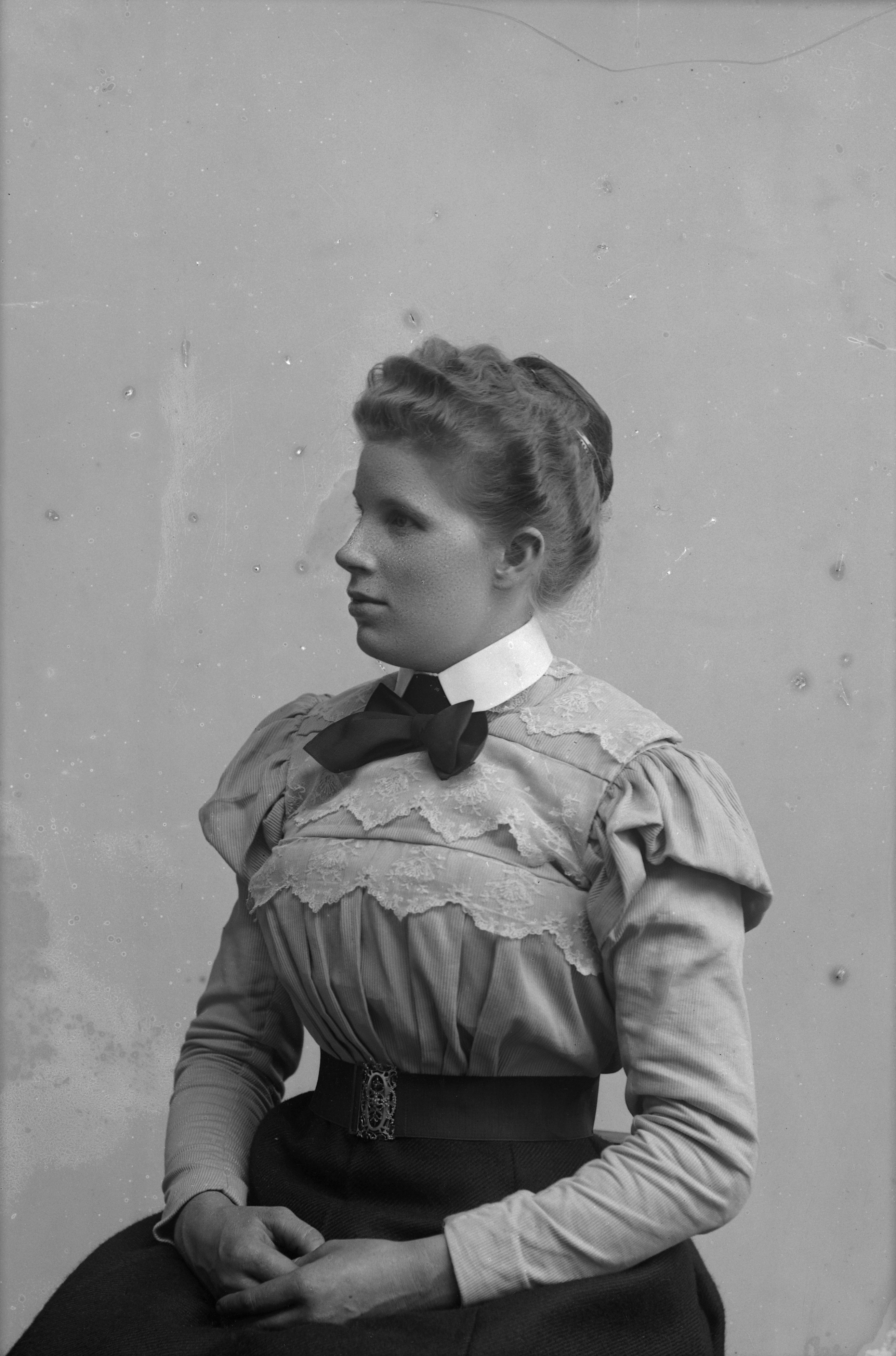 Porträtt i halvfigur av Maria Larsson, ansikte i profil.