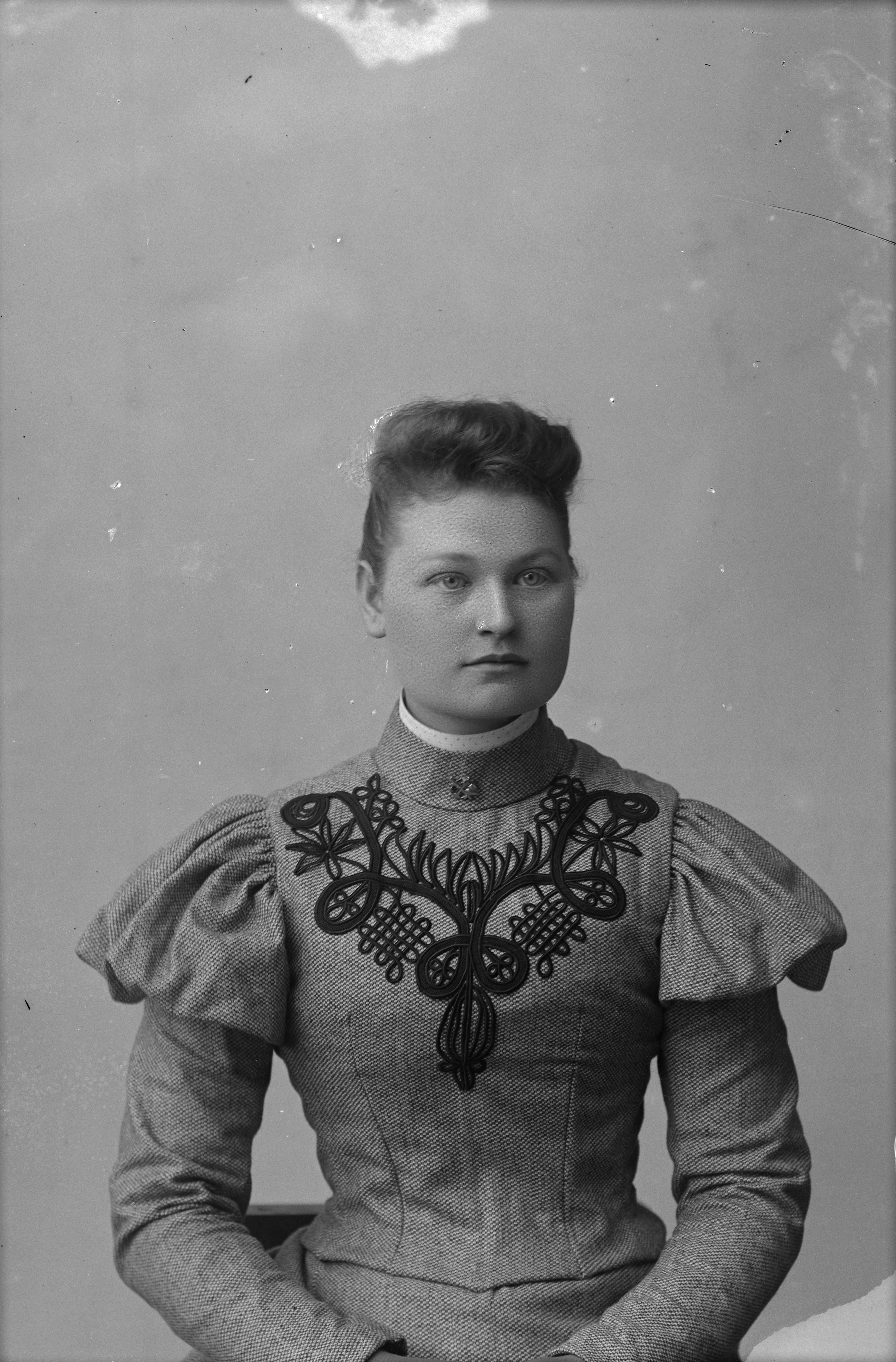 Beskrivning: Porträtt i halvfigur av Betty E. Andersson.