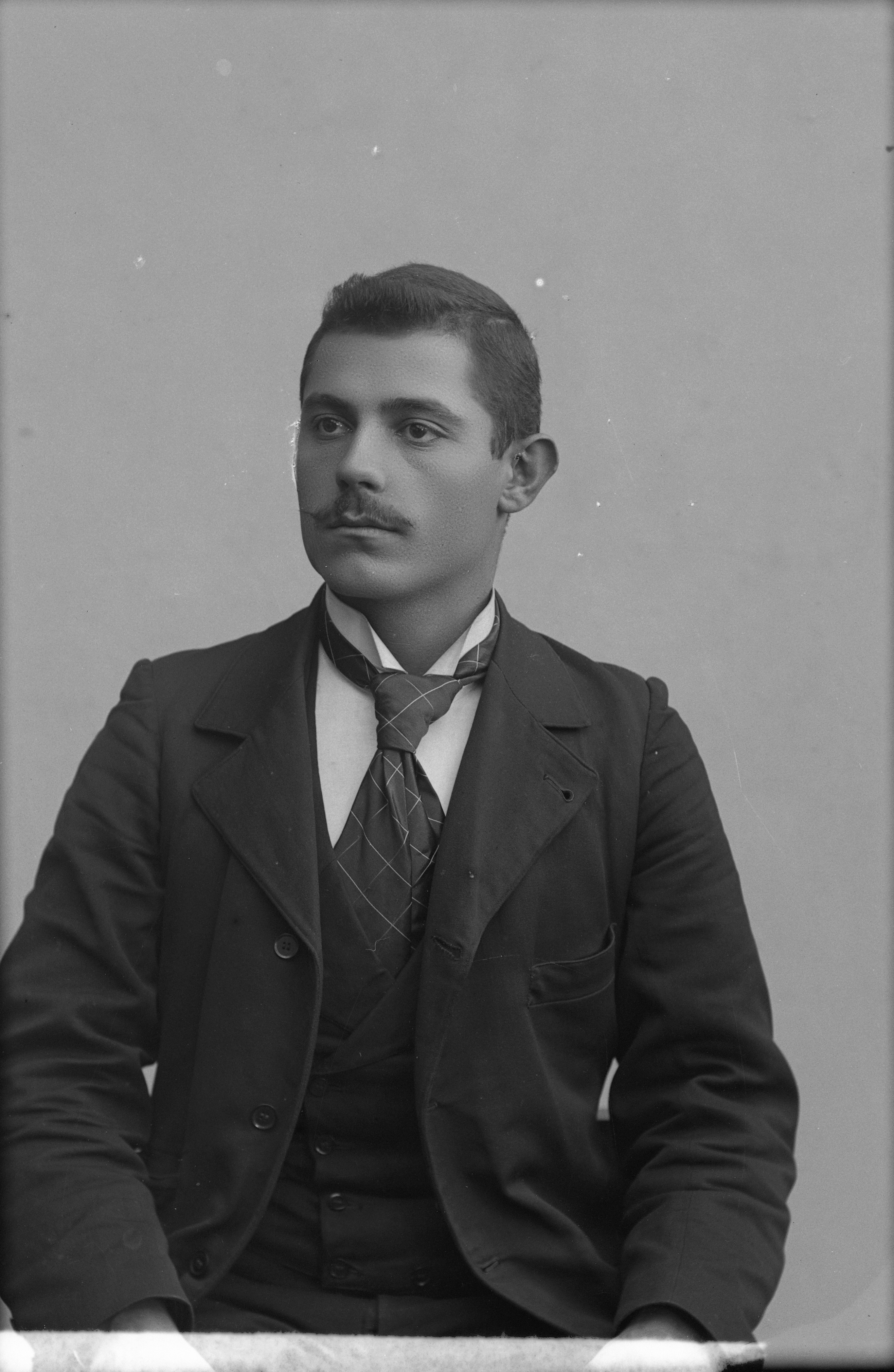 Beskrivning: Porträtt i halvfigur av musikern Giovanni Di Giadomencio.