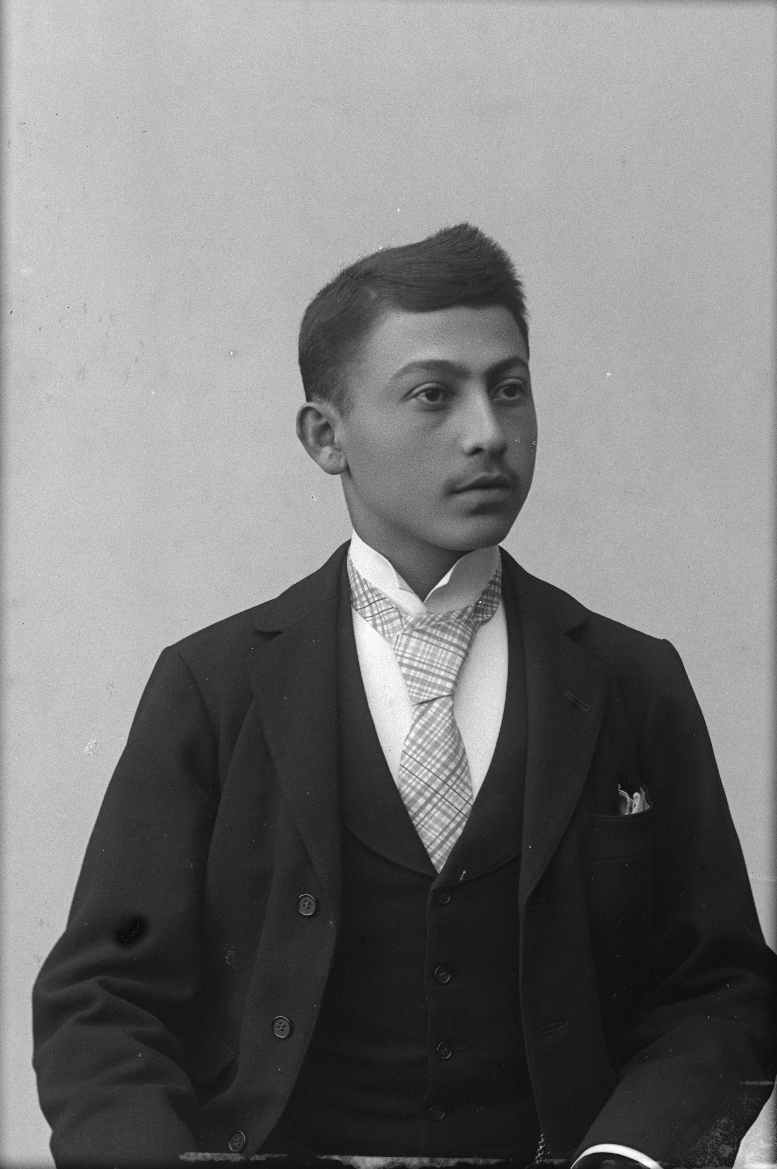 Beskrivning: Porträtt i halvfigur av Aron Carlin.
