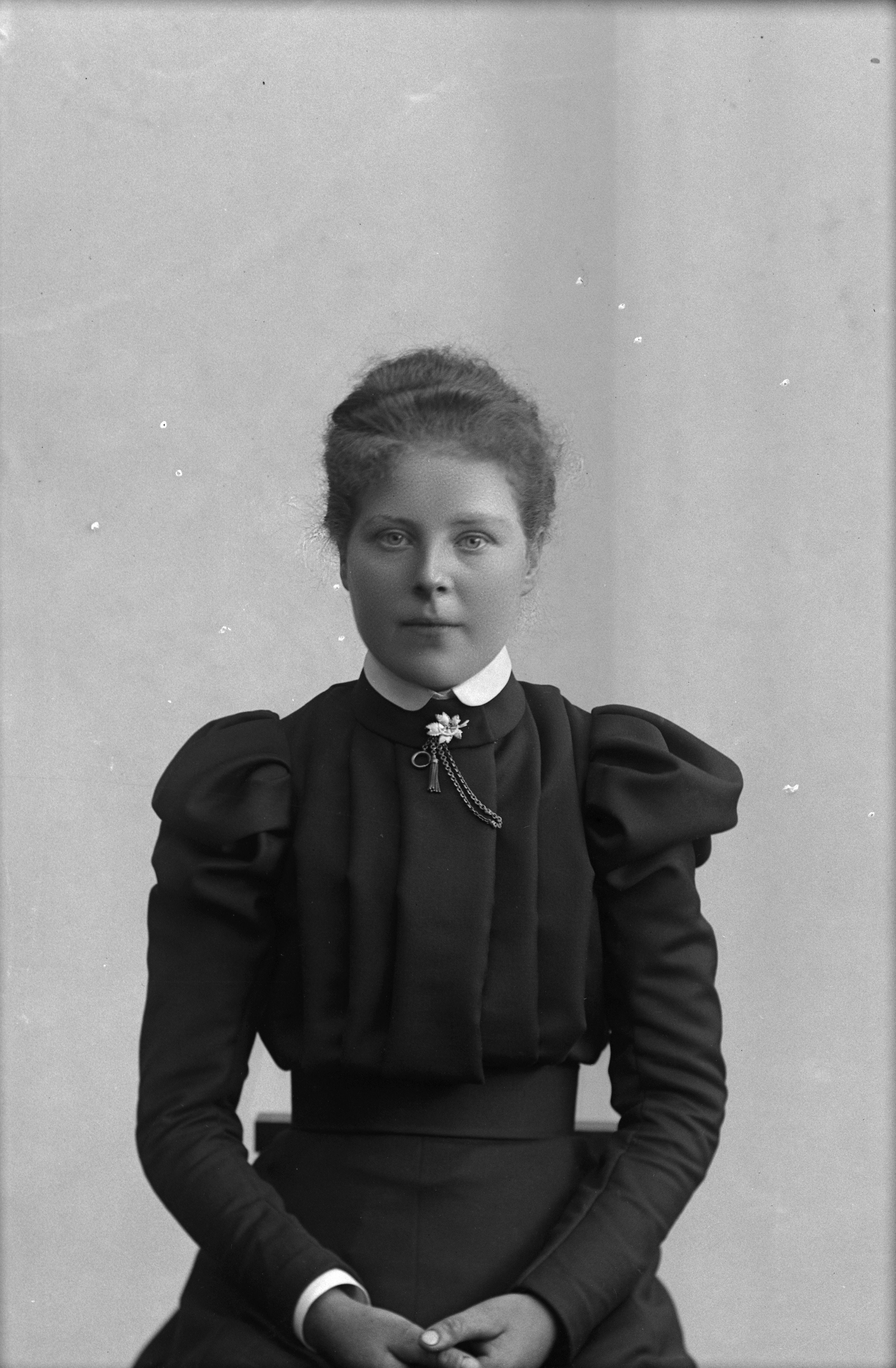 Beskrivning: Porträtt i halvfigur av Elise Nilsson.