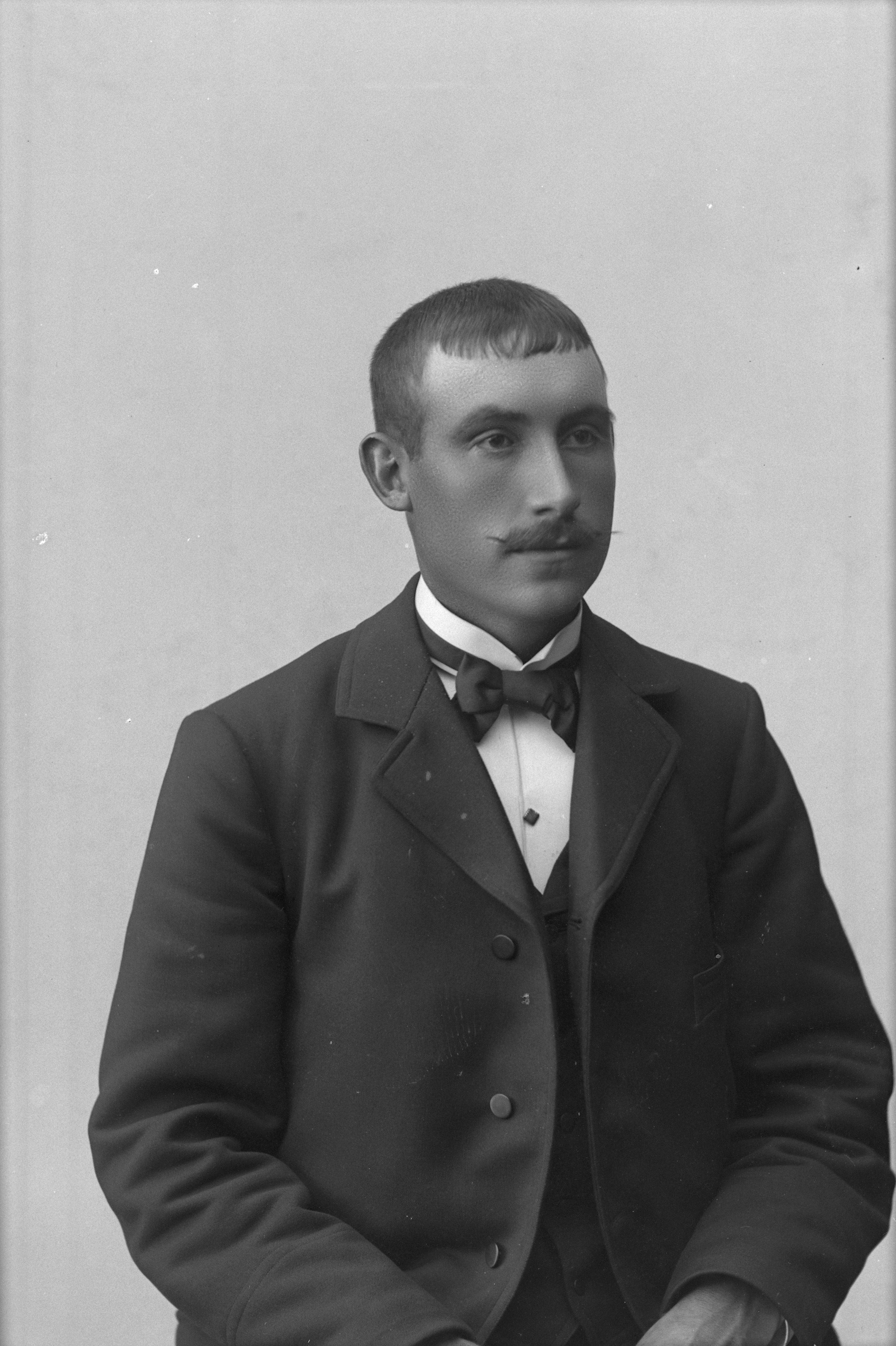 Beskrivning: Porträtt i halvfigur av L. Vik.