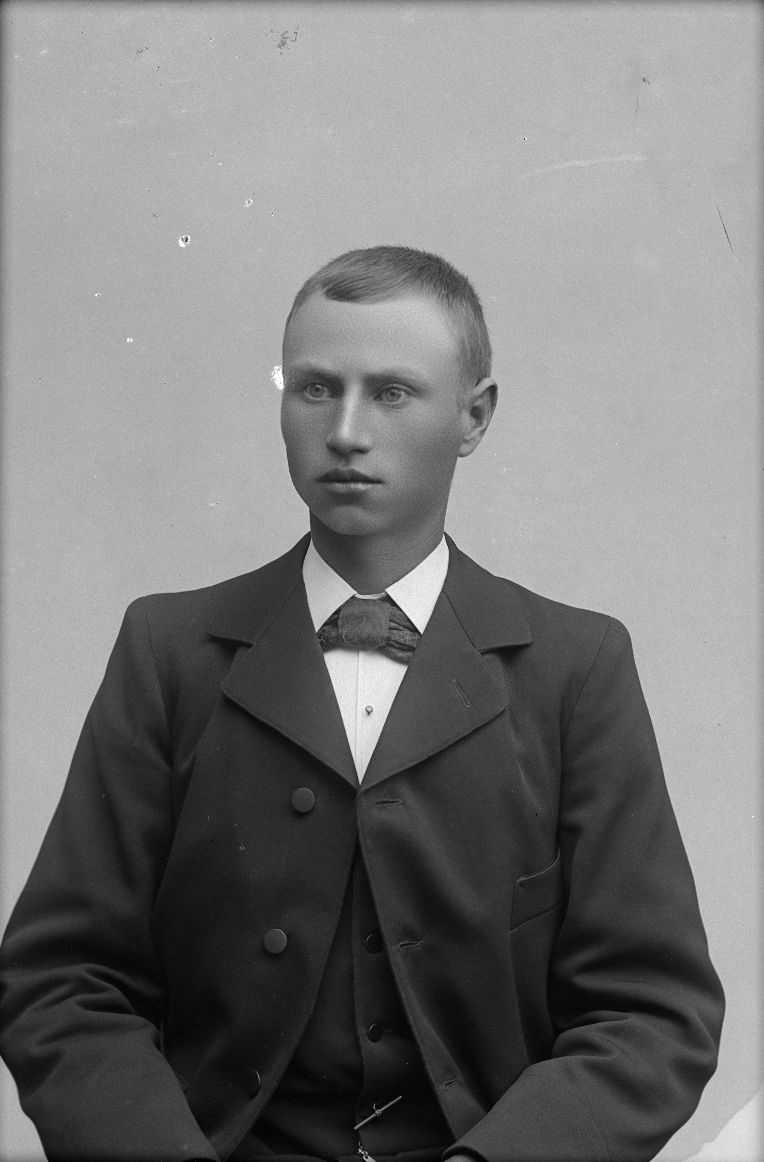Beskrivning: Porträtt halvfigur av G. H. Sjögren vid Klagstorps Kalkbrott.