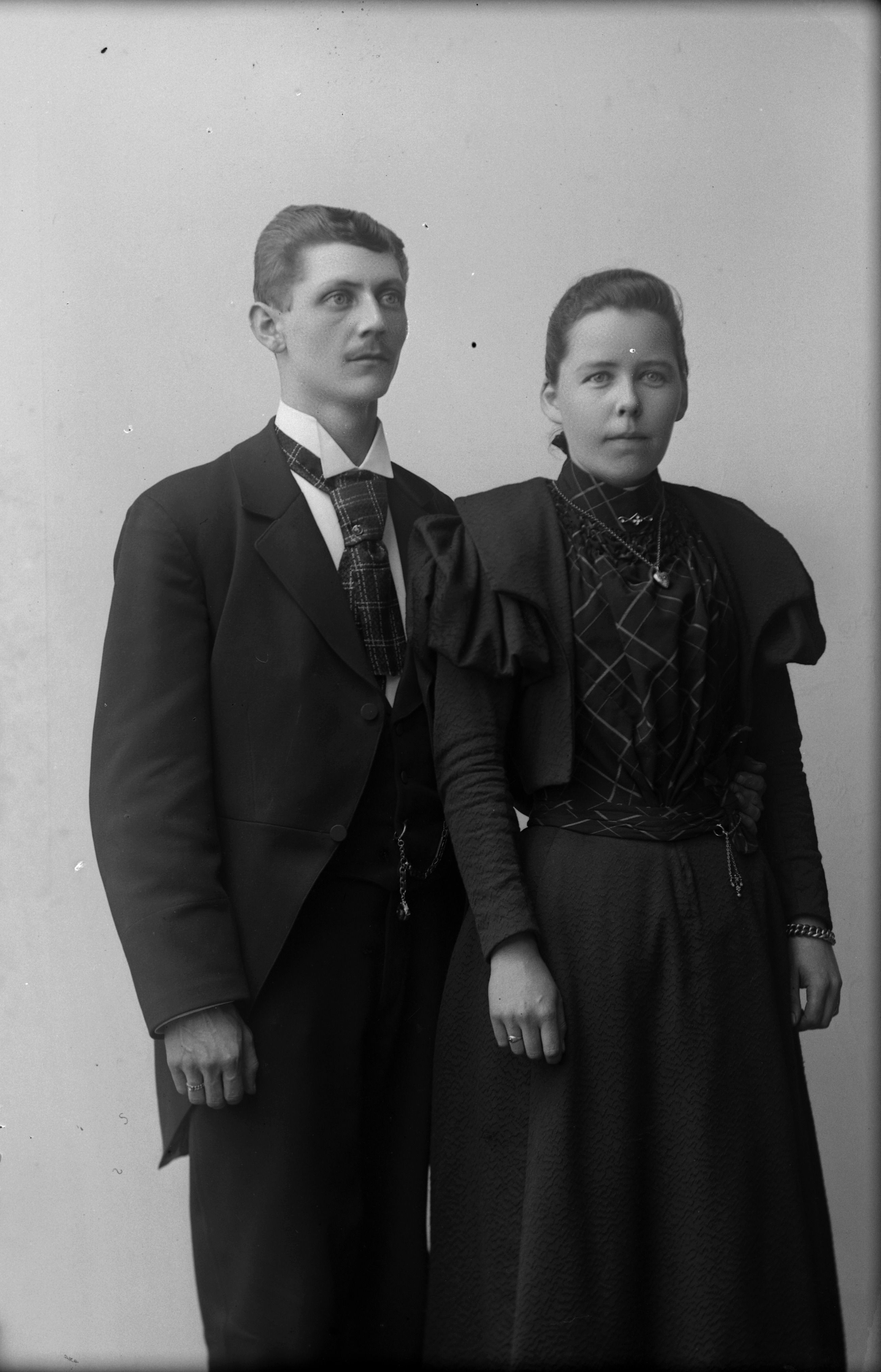 Beskrivning: Porträtt i helfigur av A. J. Svensson med fru.