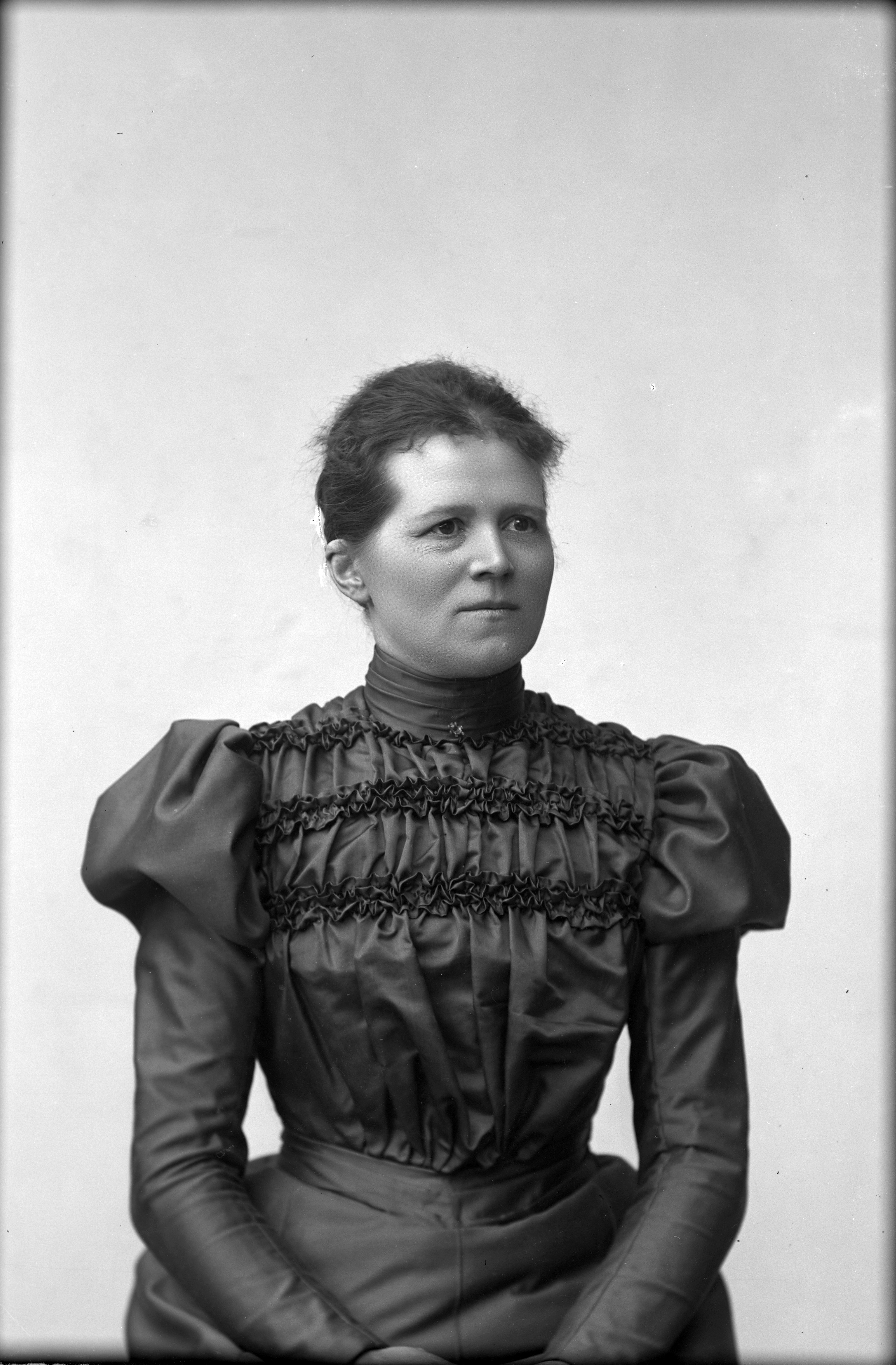 Porträtt i halvfigur av Elna Olivia Lindelöf, född Hallengren.