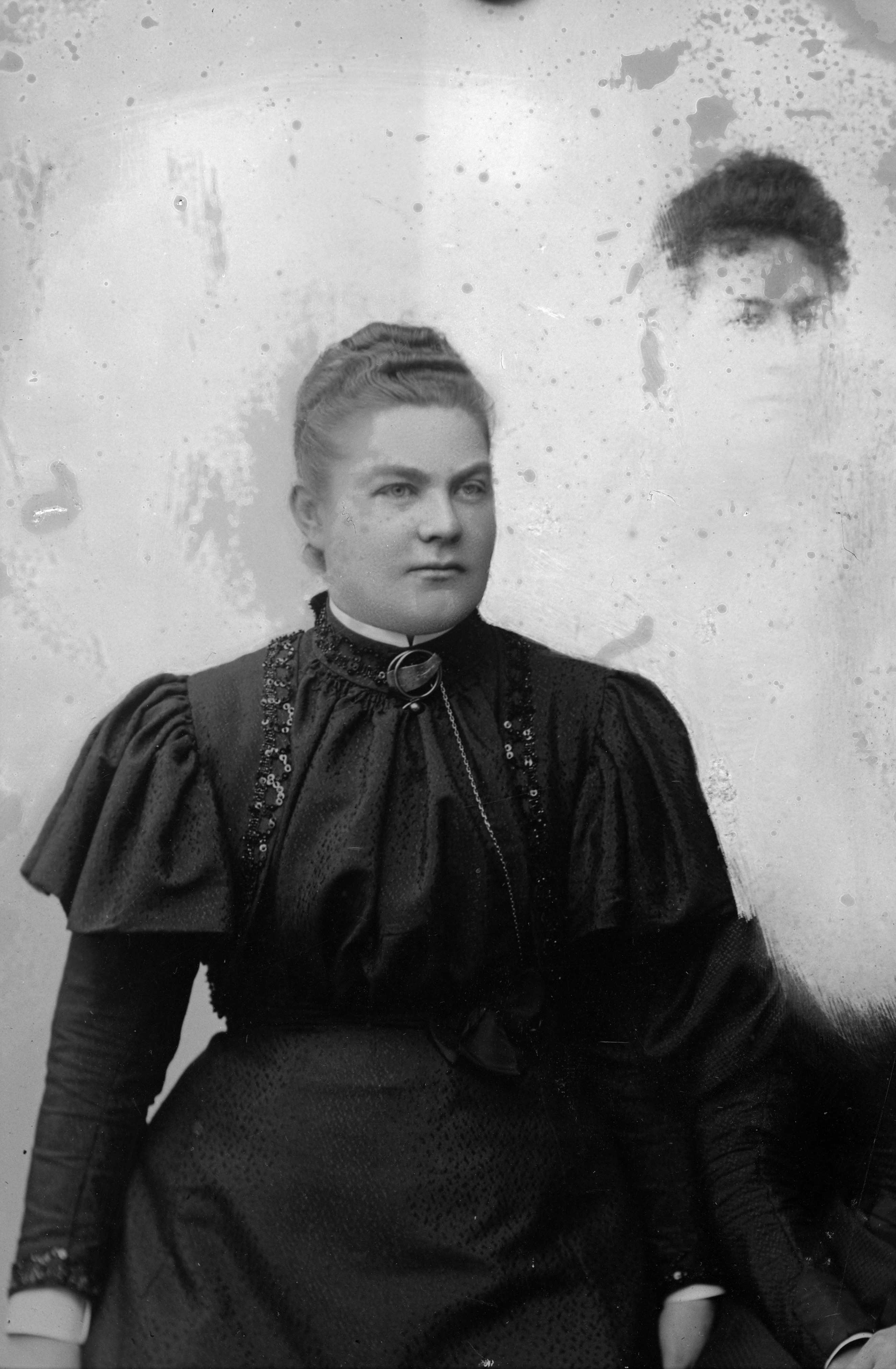 Beskrivning: Porträtt i halvfigur av fru Ahlberg. Retuscherat parporträtt.
