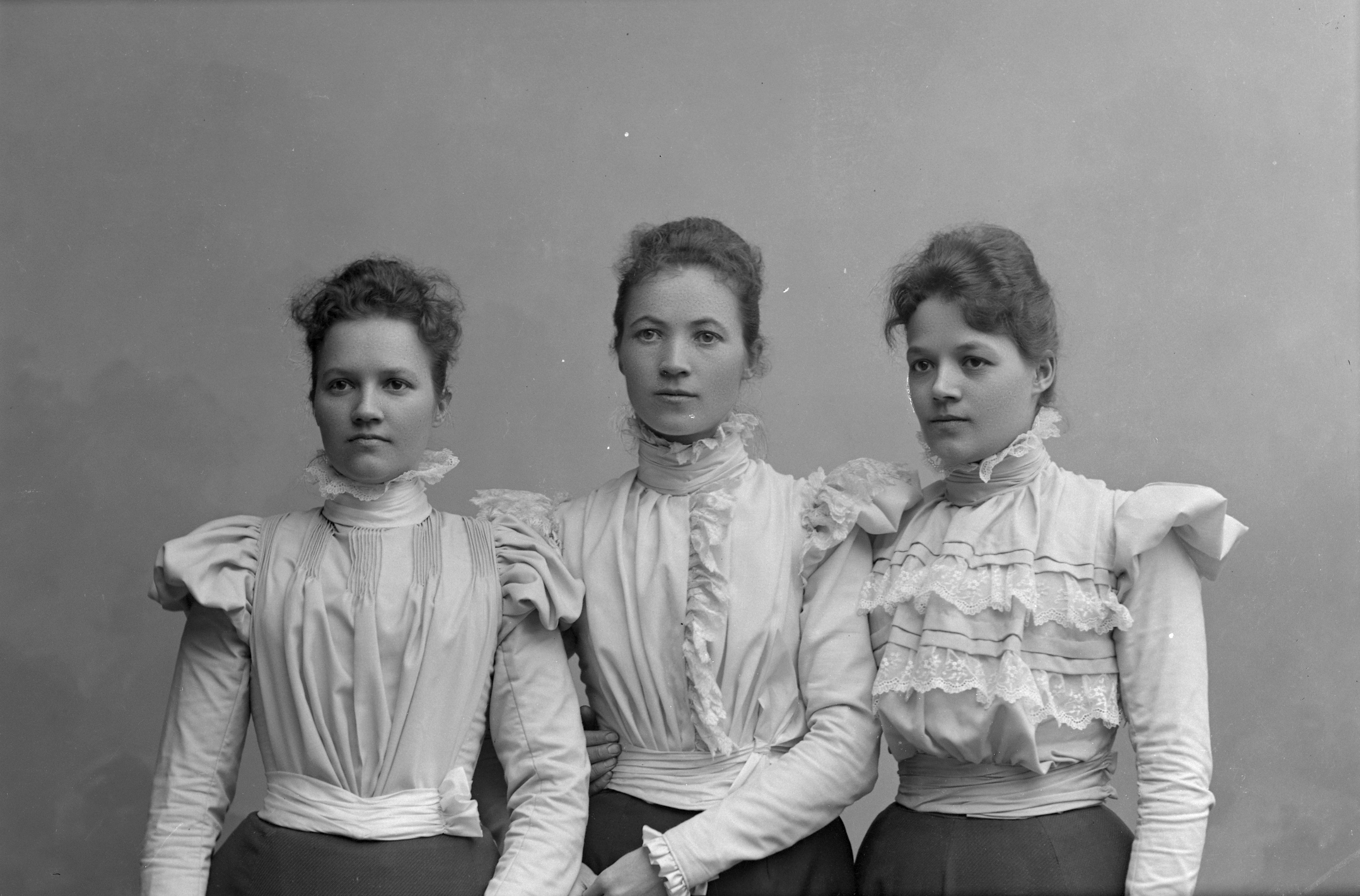 Beskrivning: Porträtt i halvfigur av Elsa och Anna Hammarstrand med okänd kvinna.