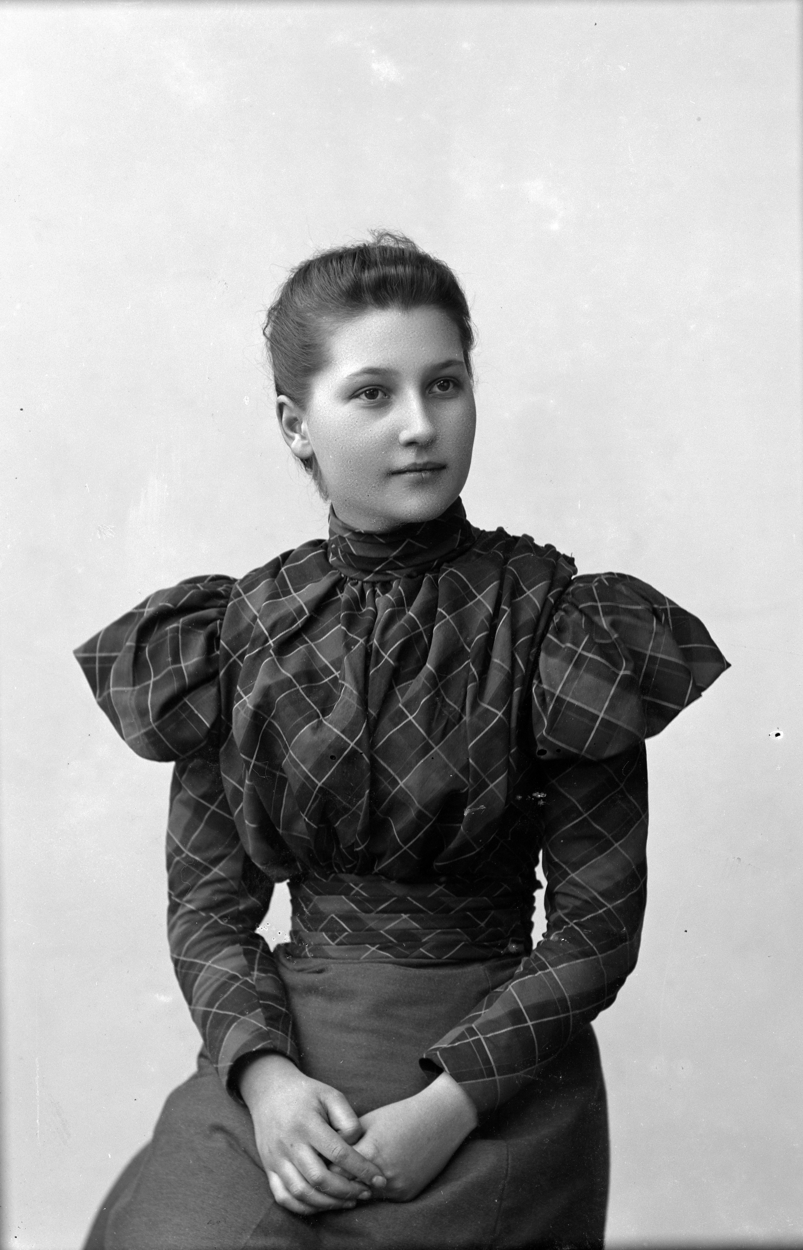 Beskrivning: Porträtt i halvfigur av Cecilia Larsson /Djäknegatan.