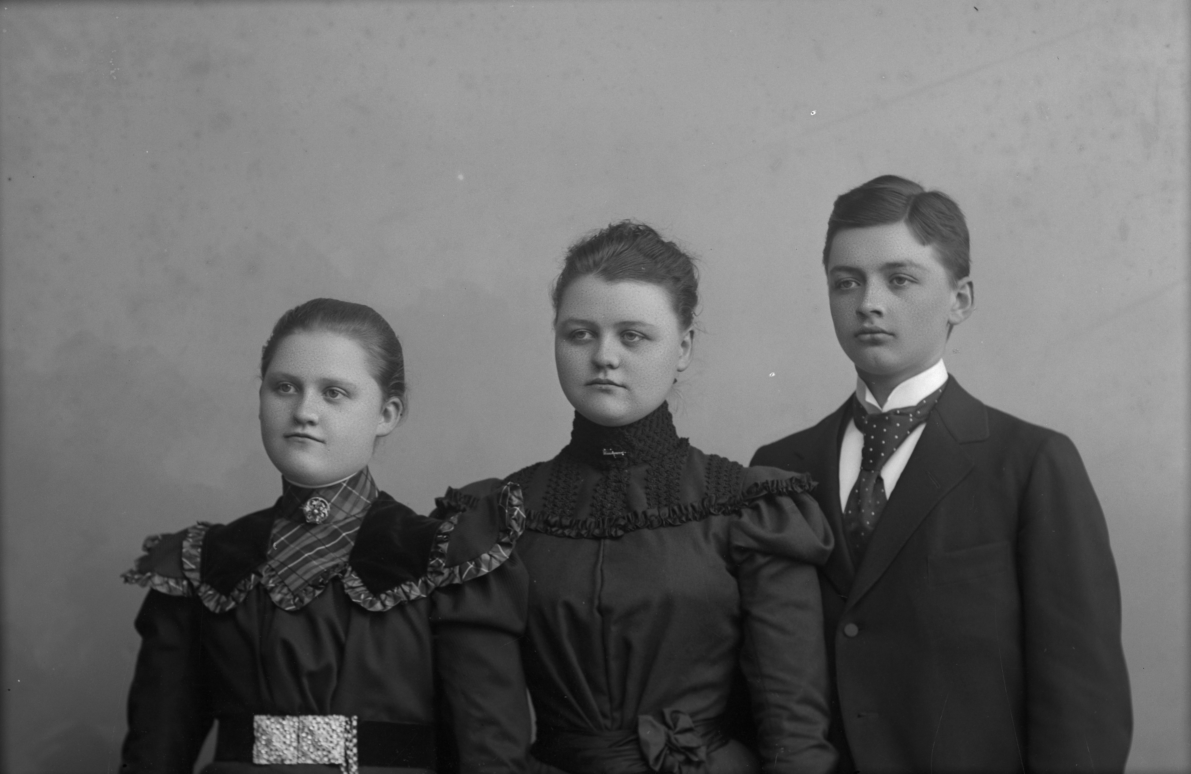 Beskrivning: Porträtt i halvfigur av fröken Edstrand och herr Edstrand med okänd kvinna.
