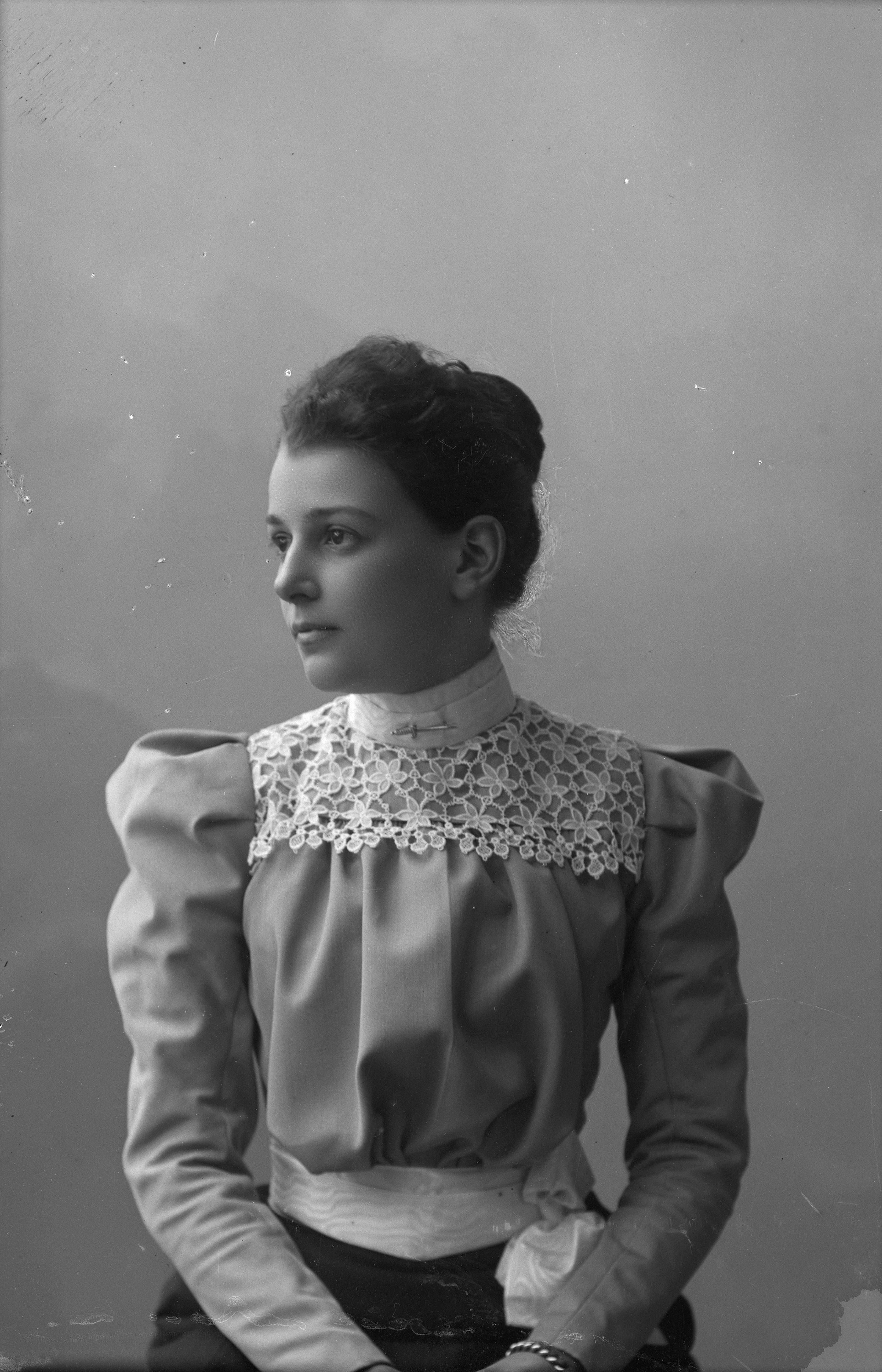 Porträtt i halvfigur av Elisabeth Hallencrantz, ansikte i profil.
