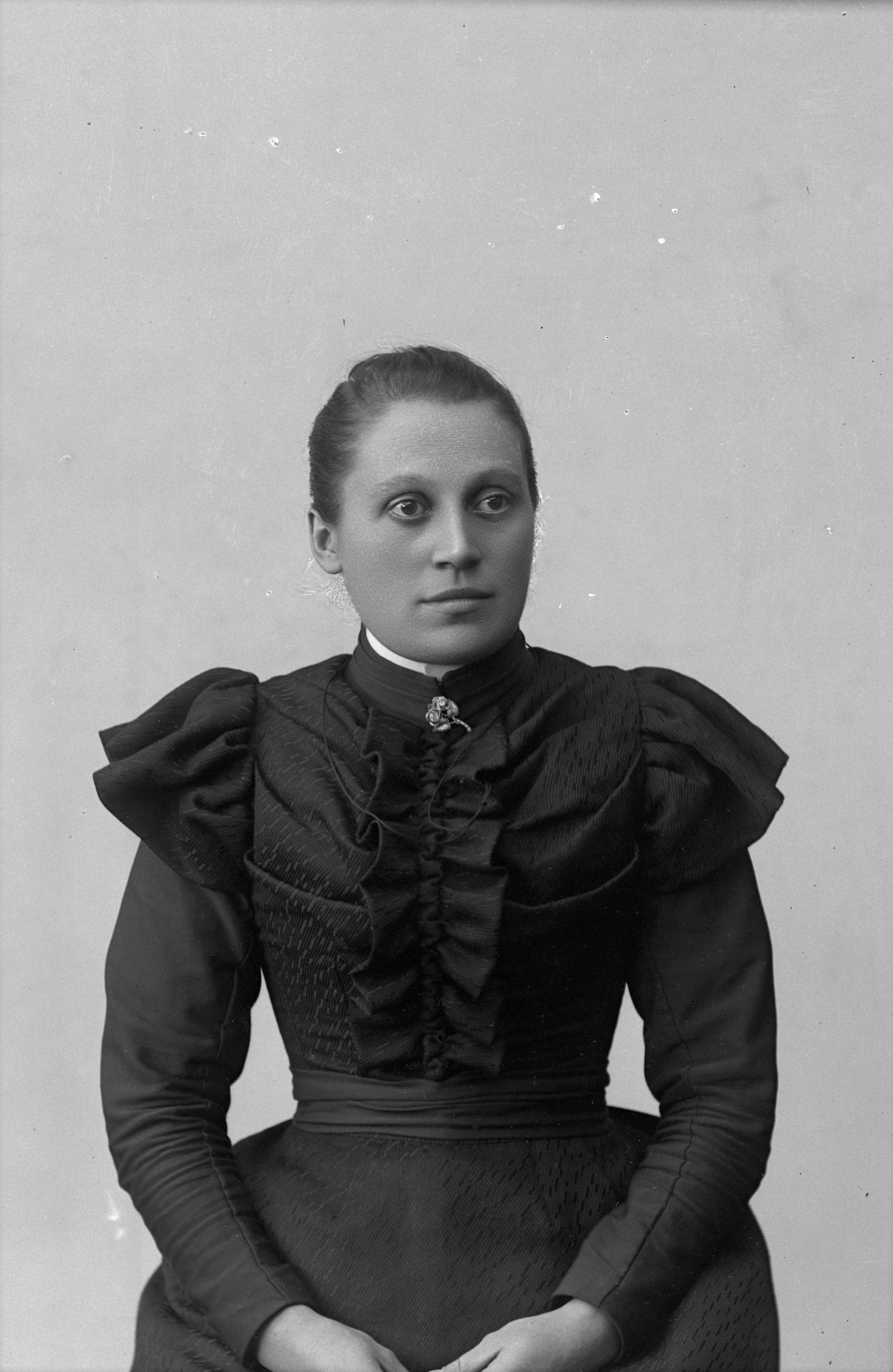 Beskrivning: Porträtt i halvfigur av sjuksköterskan Ellen Cristensson.