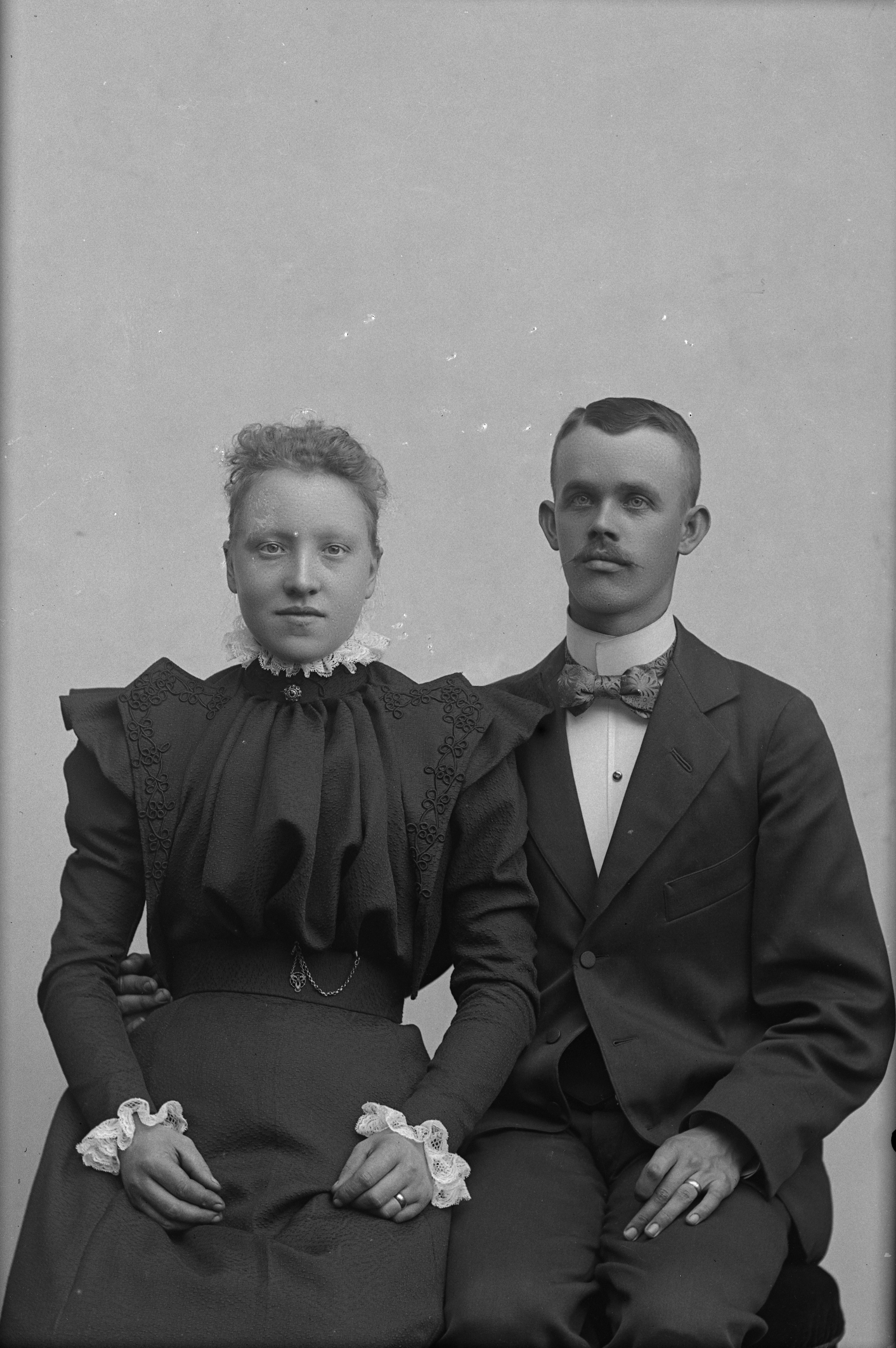 Beskrivning: Porträtt helfigur av O. A. Hellberg med fru.