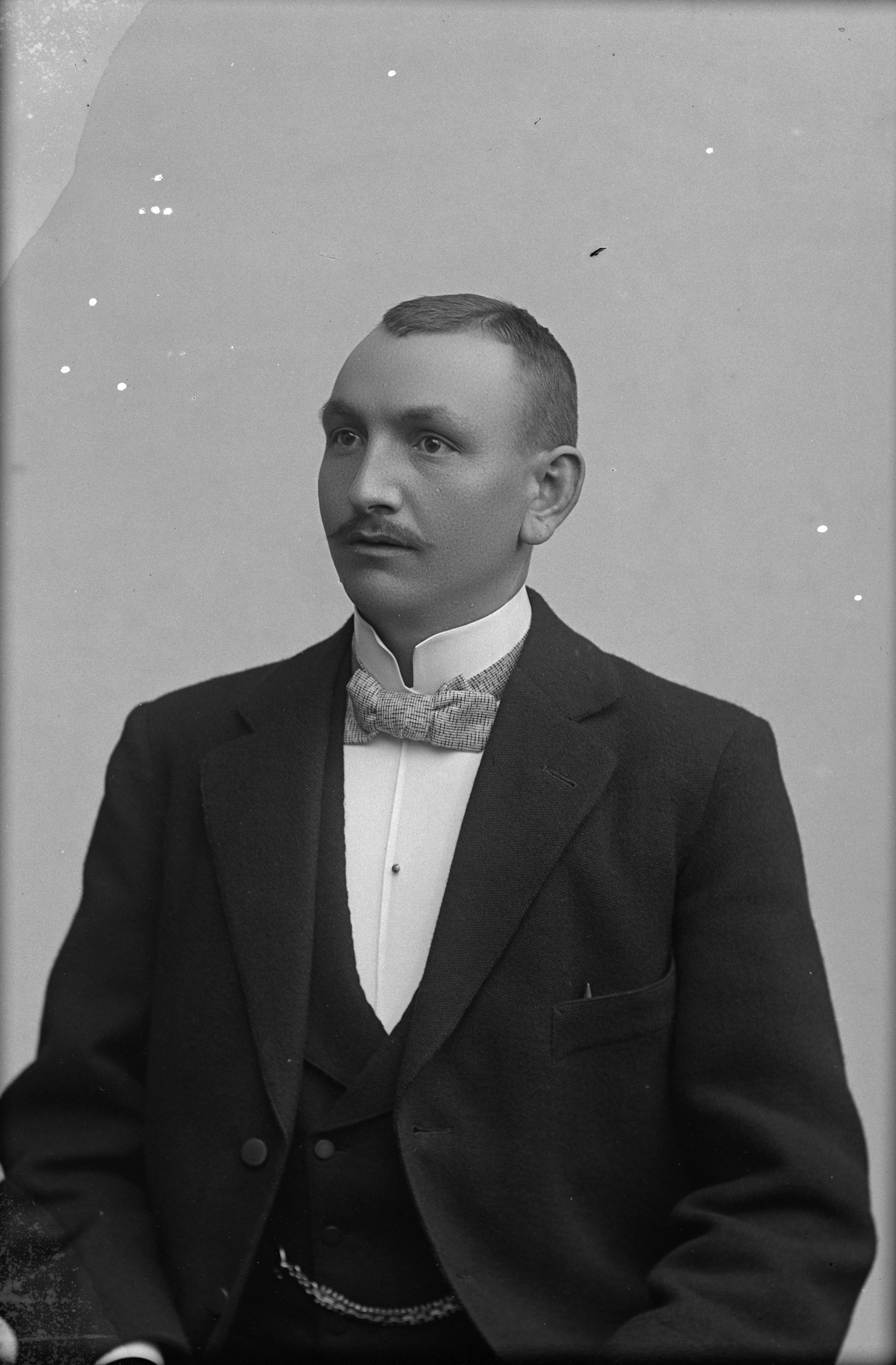 Beskrivning: Porträtt i halvfigur av O. Hallgren.