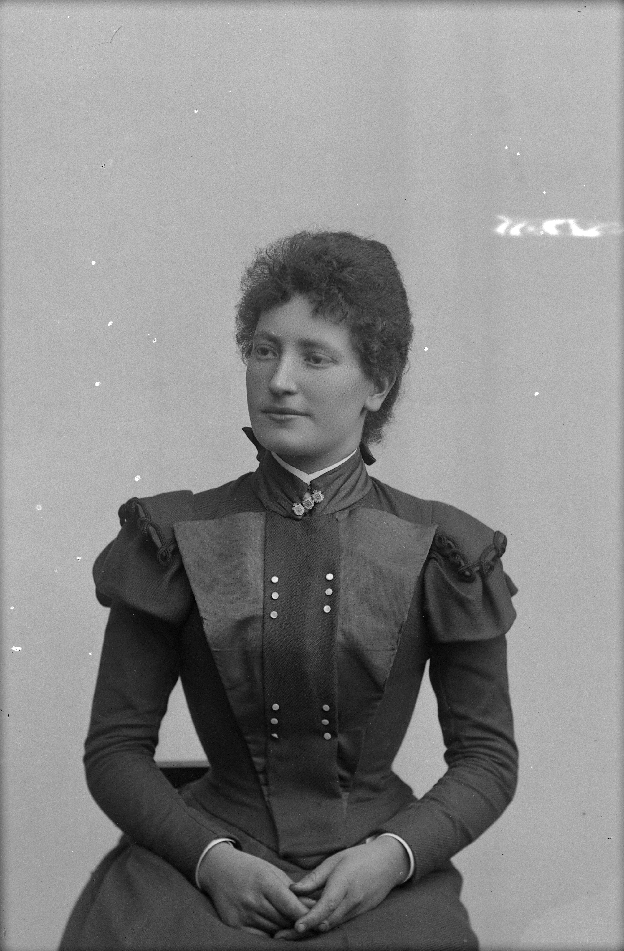 Beskrivning: Porträtt i halvfigur av Netten Jeppsson.