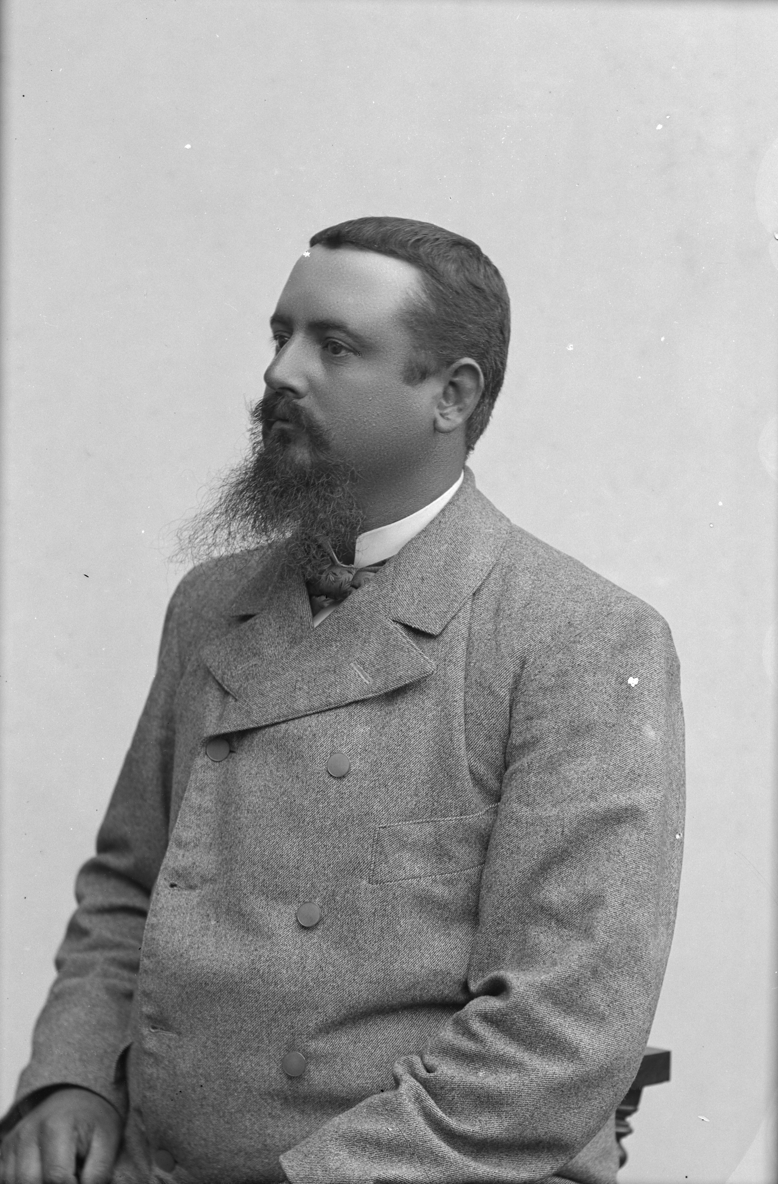 Beskrivning: Porträtt i halvfigur av banmästare Håkansson.
