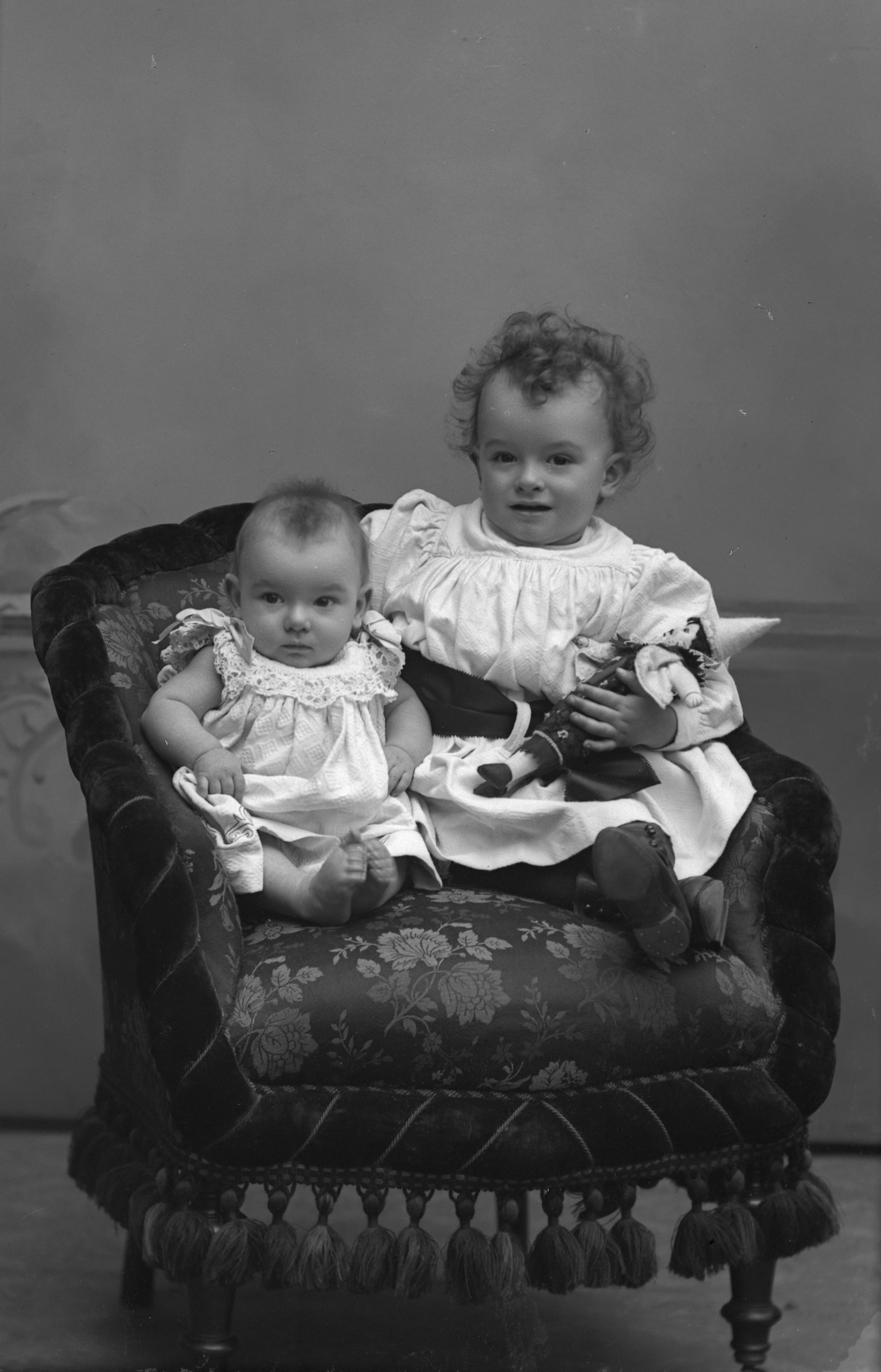 Porträtt i helfigur av Harald och Astrid Carola Boklund, sittande i fåtölj.
