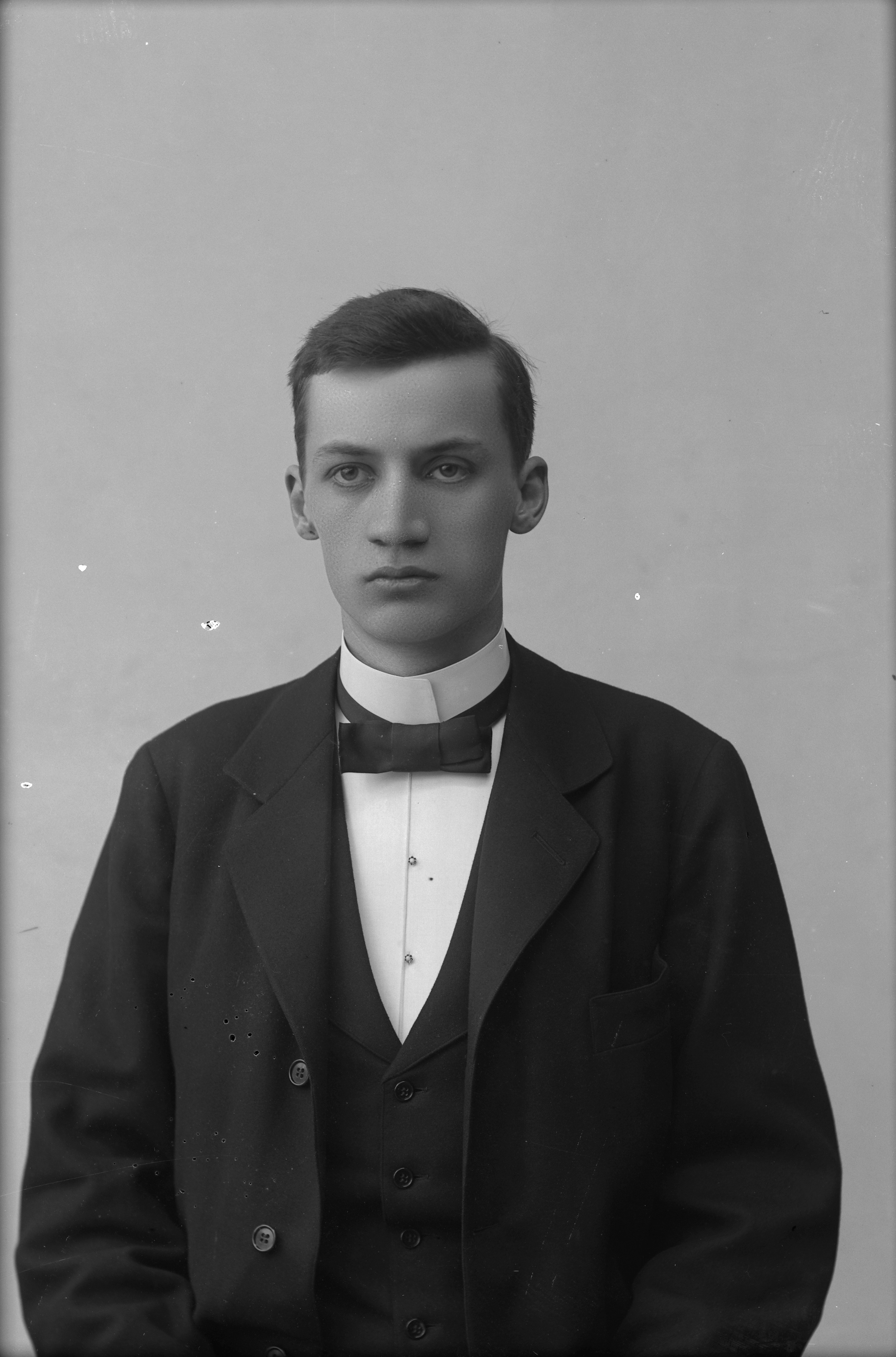 Beskrivning: Porträtt i halvfigur av studenten herr Stjerna.