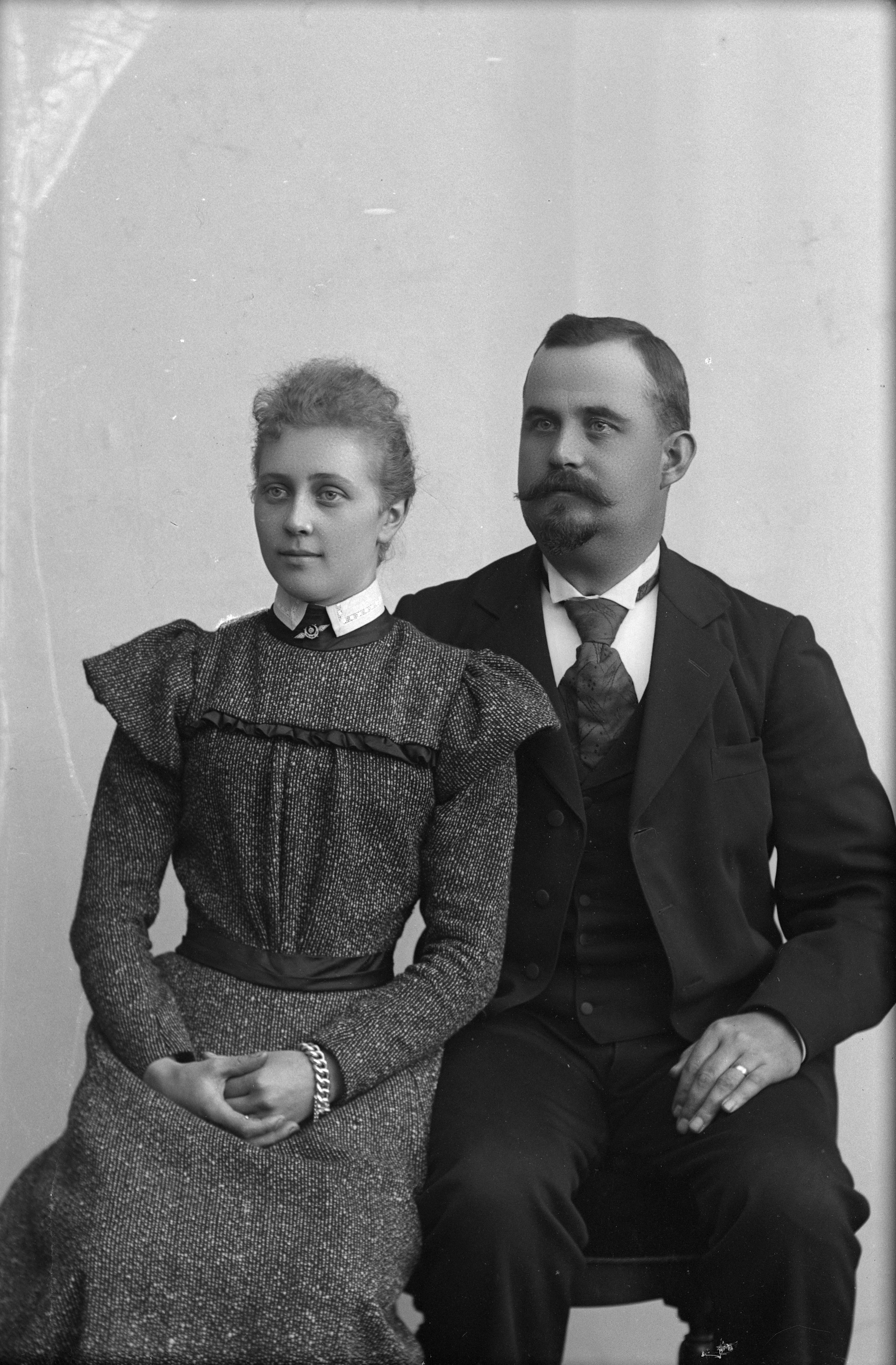Beskrivning: Porträtt i helfigur av E. Löfdal med fru.