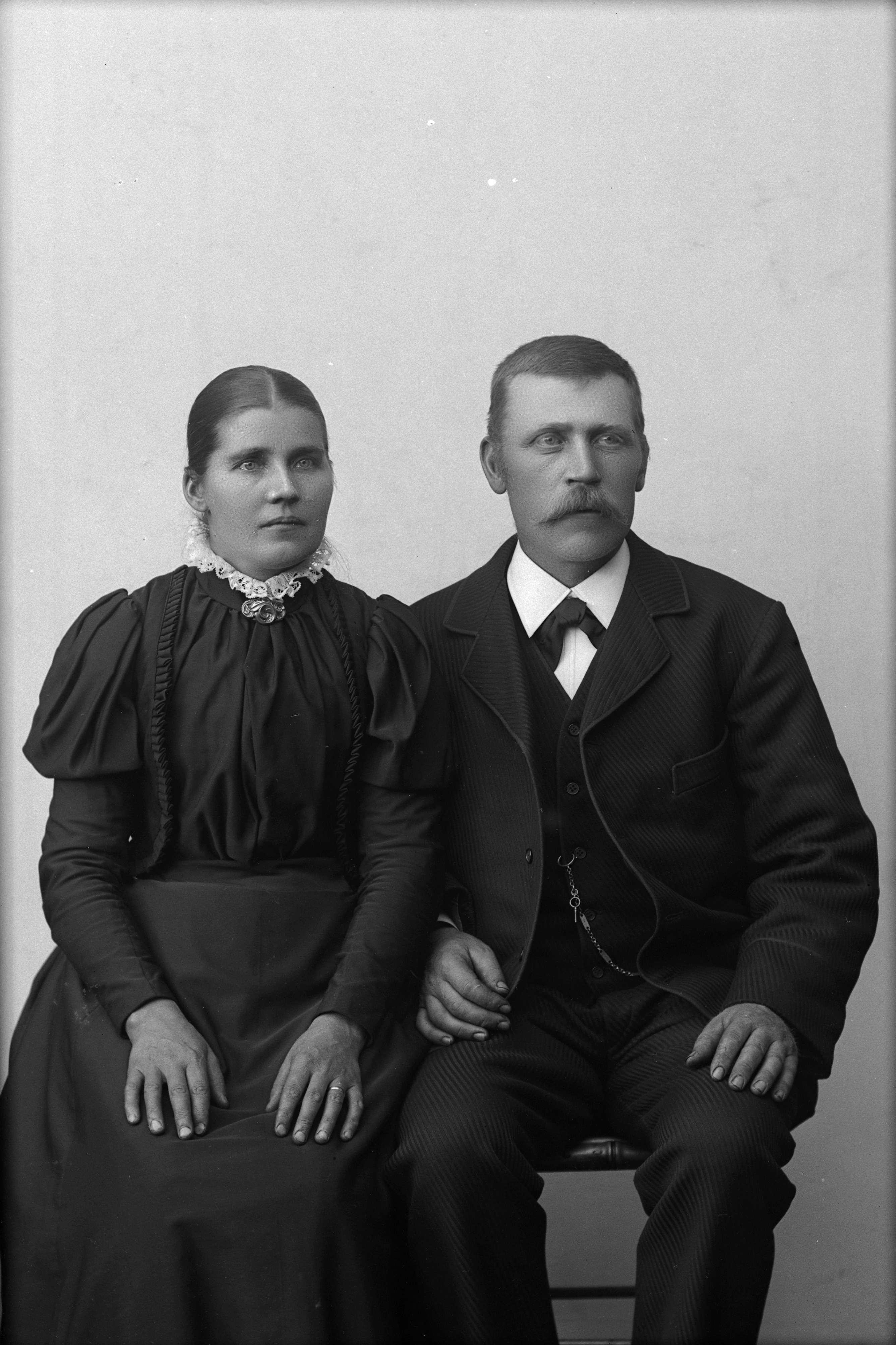 Beskrivning: Porträtt i helfigur av Nils Johansson med fru.
