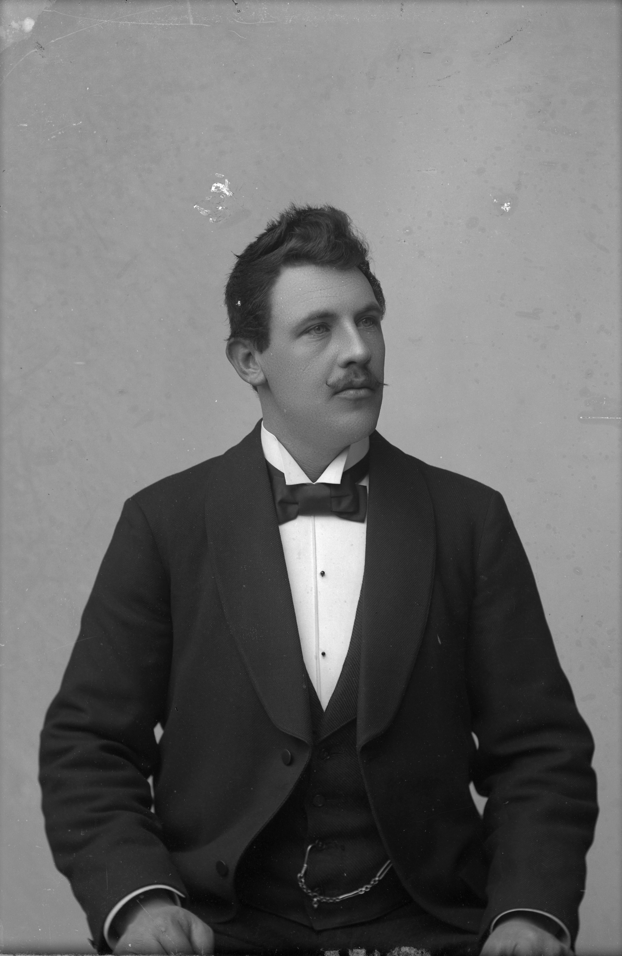 Beskrivning: Porträtt i halvfigur av F. Lind /Stora Kvarngatan.