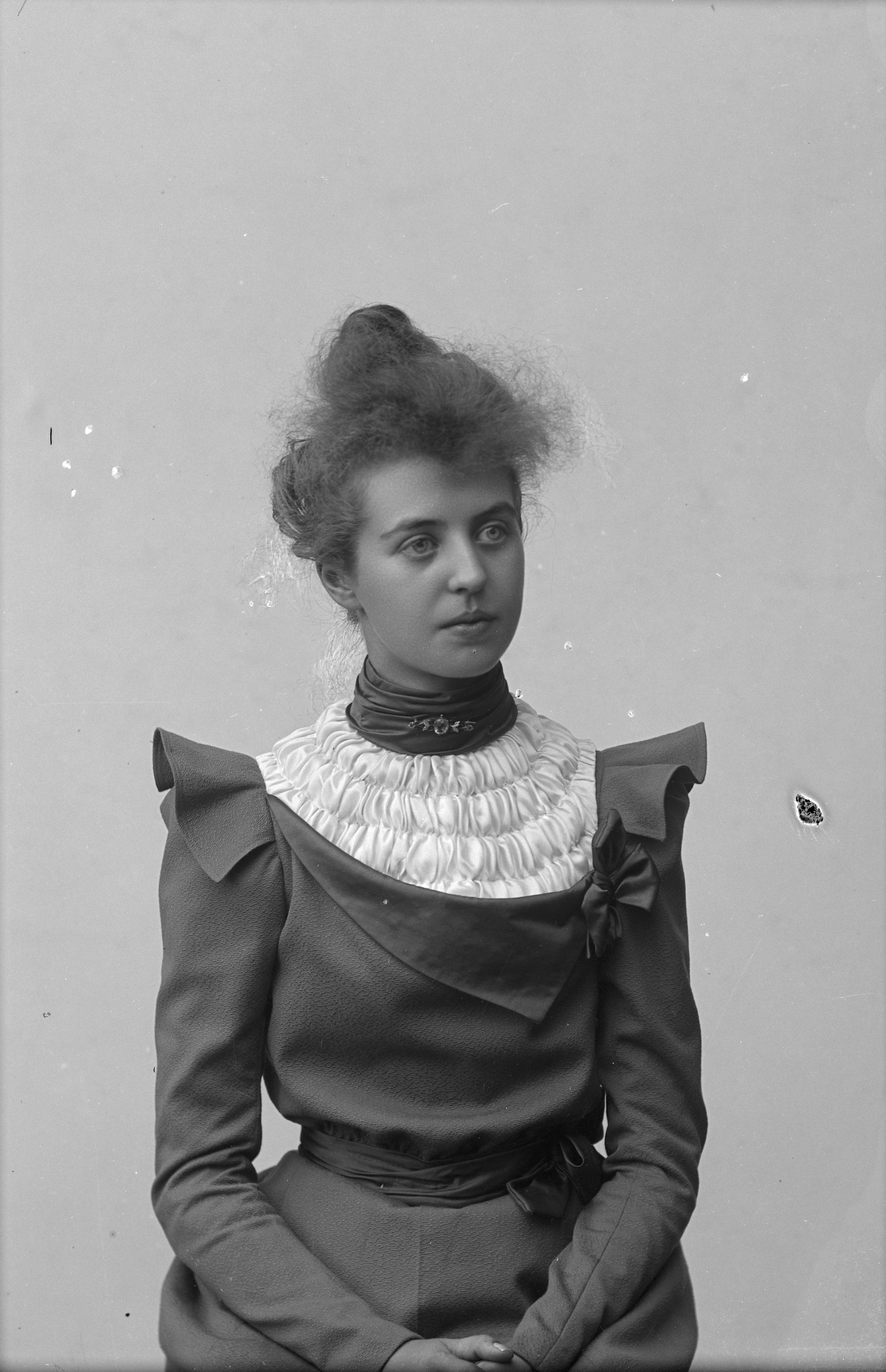 Beskrivning: Porträtt i halvfigur av Karin Törnberg.