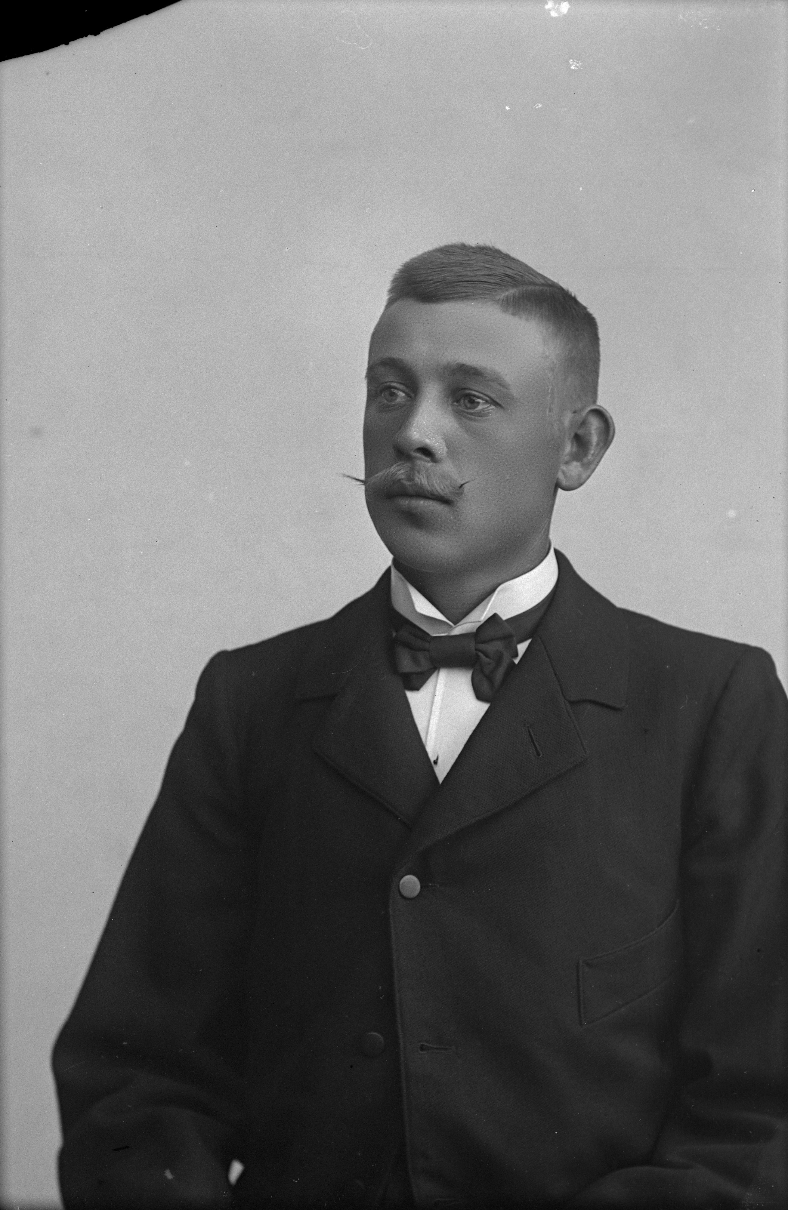 Beskrivning: Porträtt i halvfigur av S. J. Nilsson vid Klagstorps Kalkbrott.