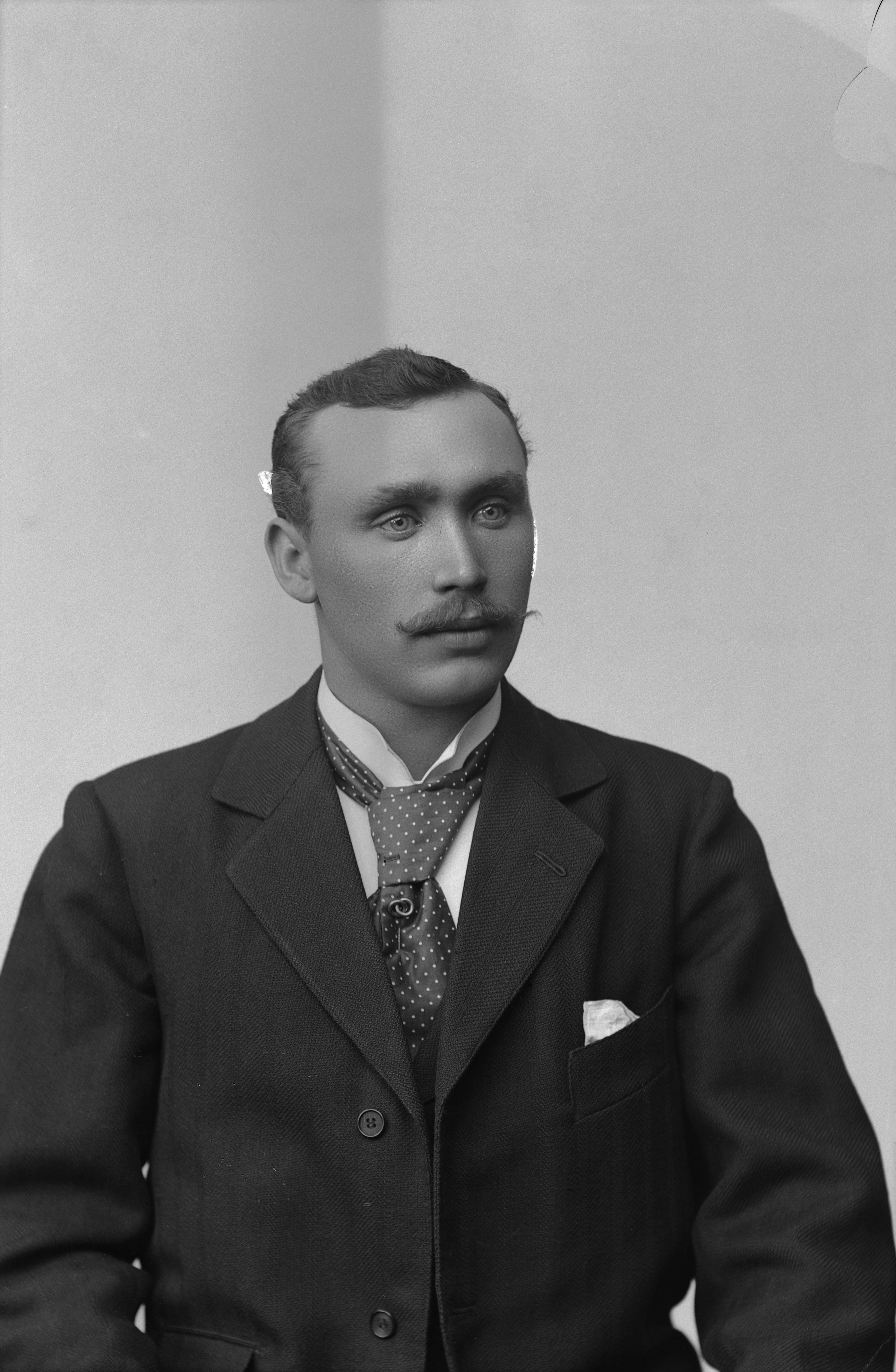 Beskrivning: Porträtt i helfigur av arkitekt O. Borgman.