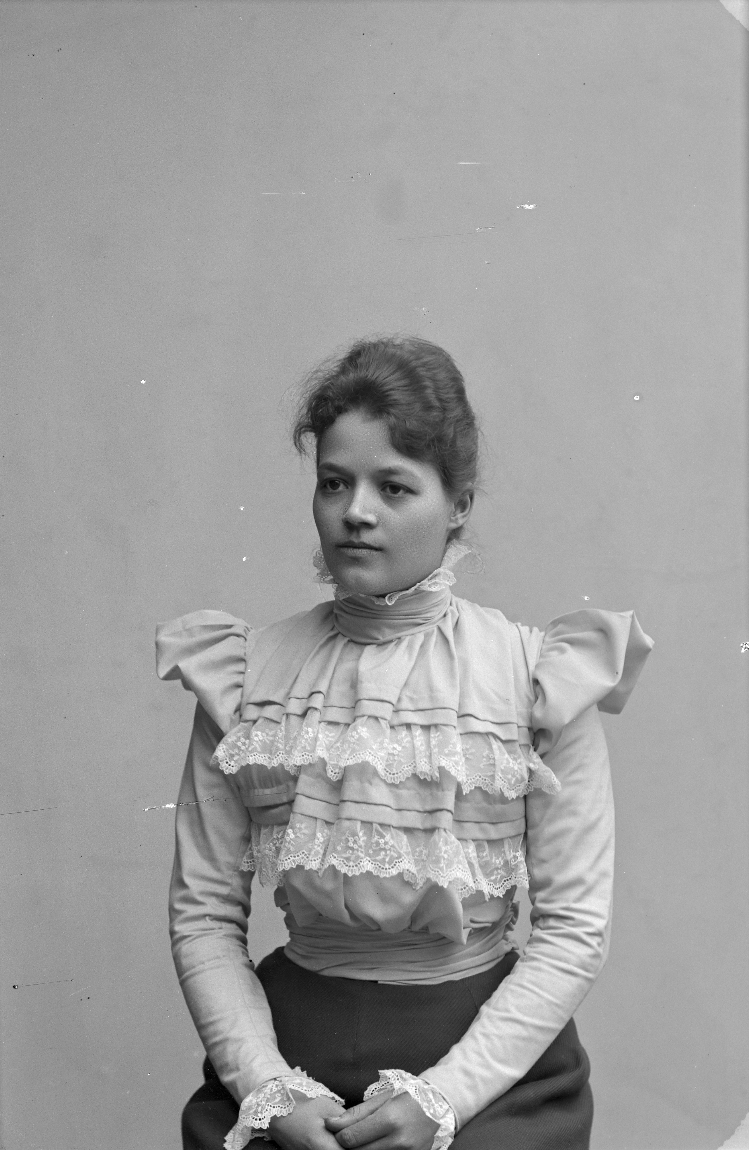 Beskrivning: Porträtt i halvfigur av Anna Hammarstrand /Höör.