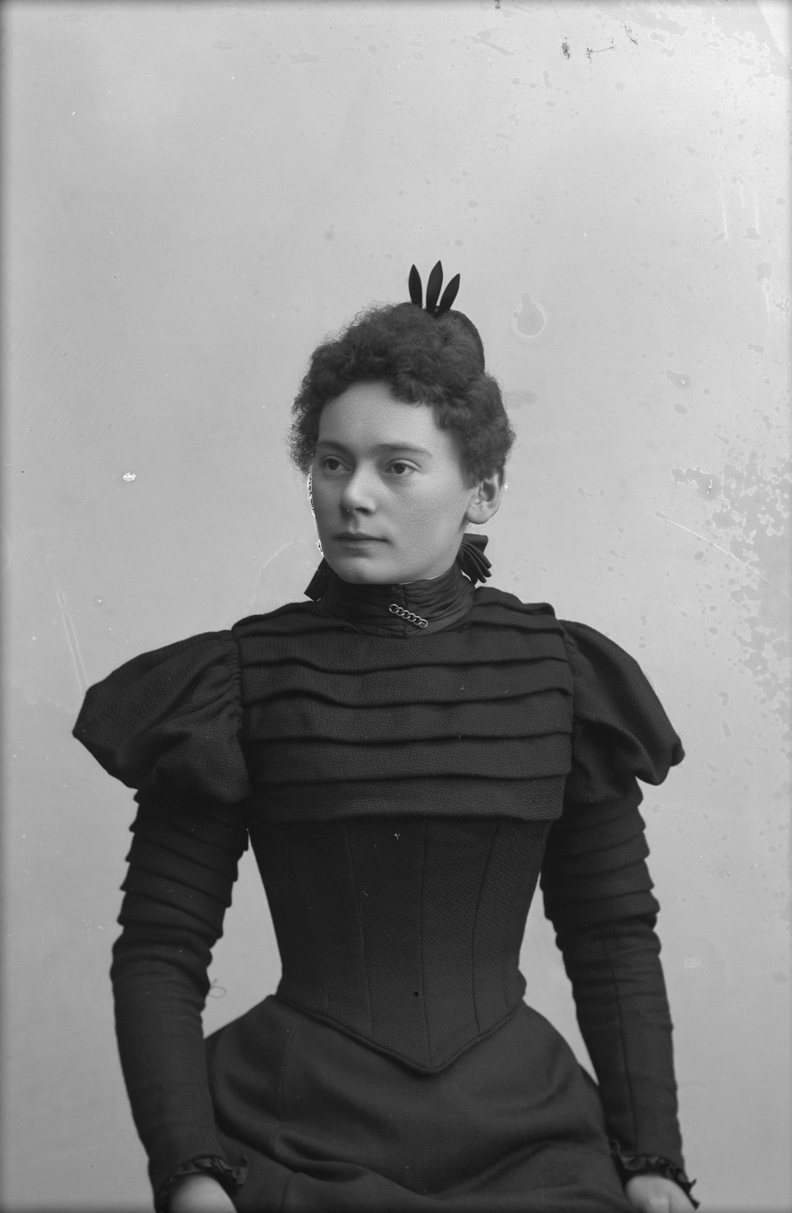 Beskrivning: Porträtt i halvfigur av Johanna Ljungberg.
