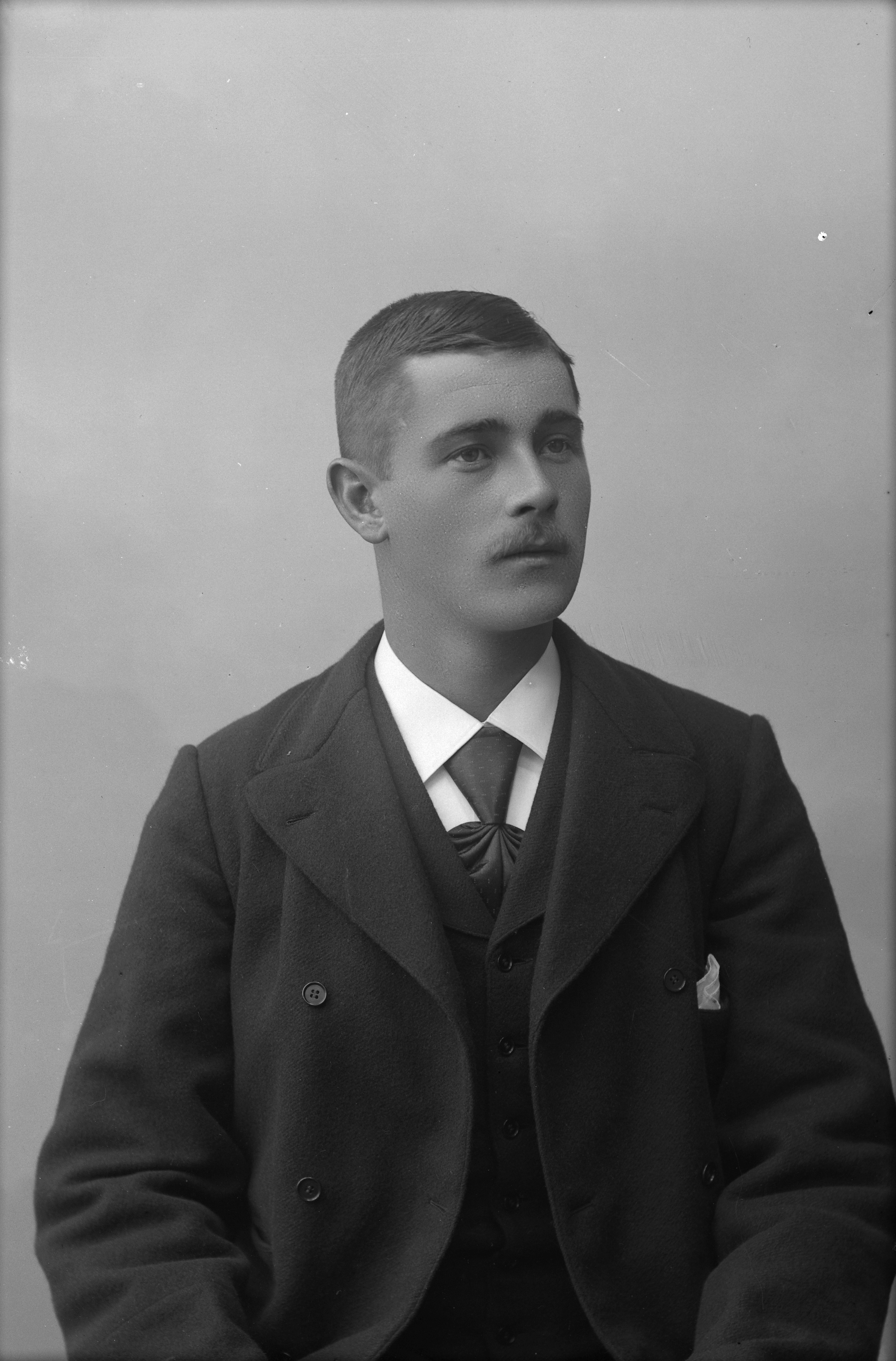 Beskrivning: Porträtt i halvfigur av Hugo Lindman.