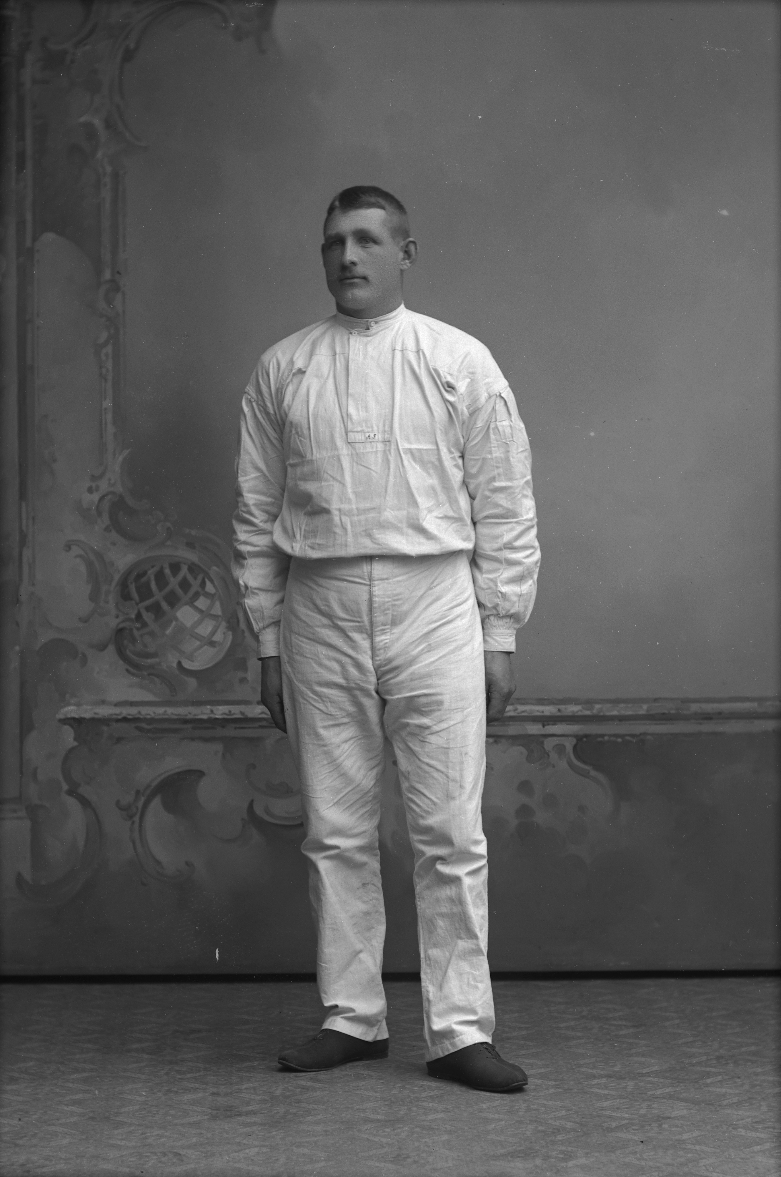 Beskrivning: Porträtt i helfigur av August Johansson.