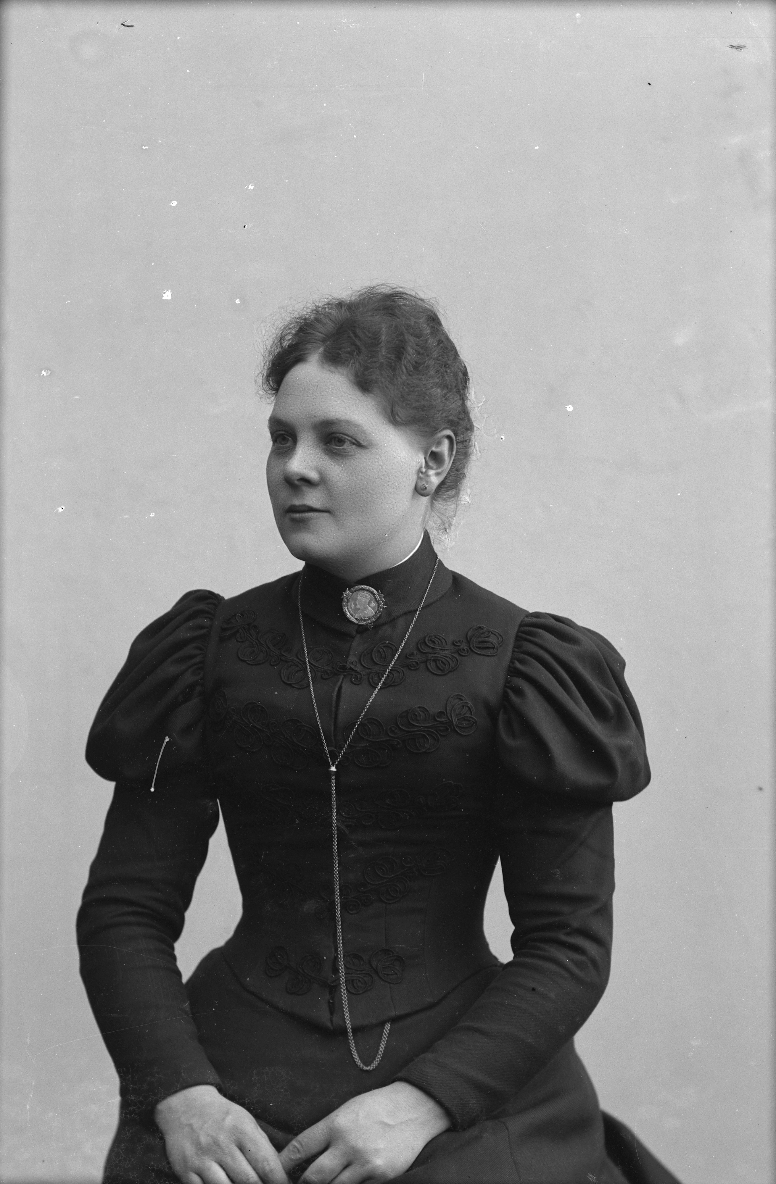 Beskrivning: Porträtt i halvfigur av Ida Holmgren.