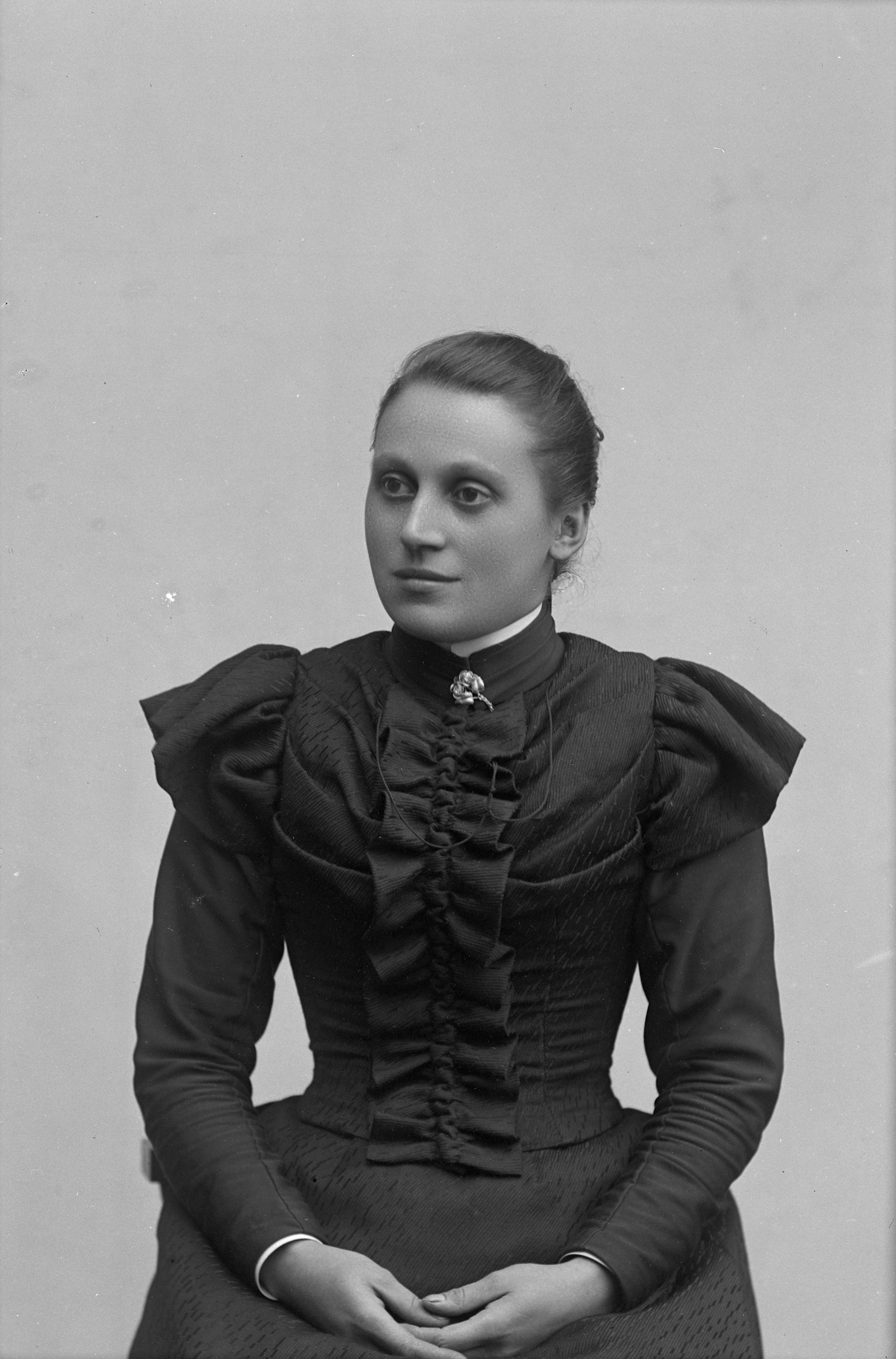 Beskrivning: Porträtt i halvfigur av sjuksköterskan Ellen Cristensson.