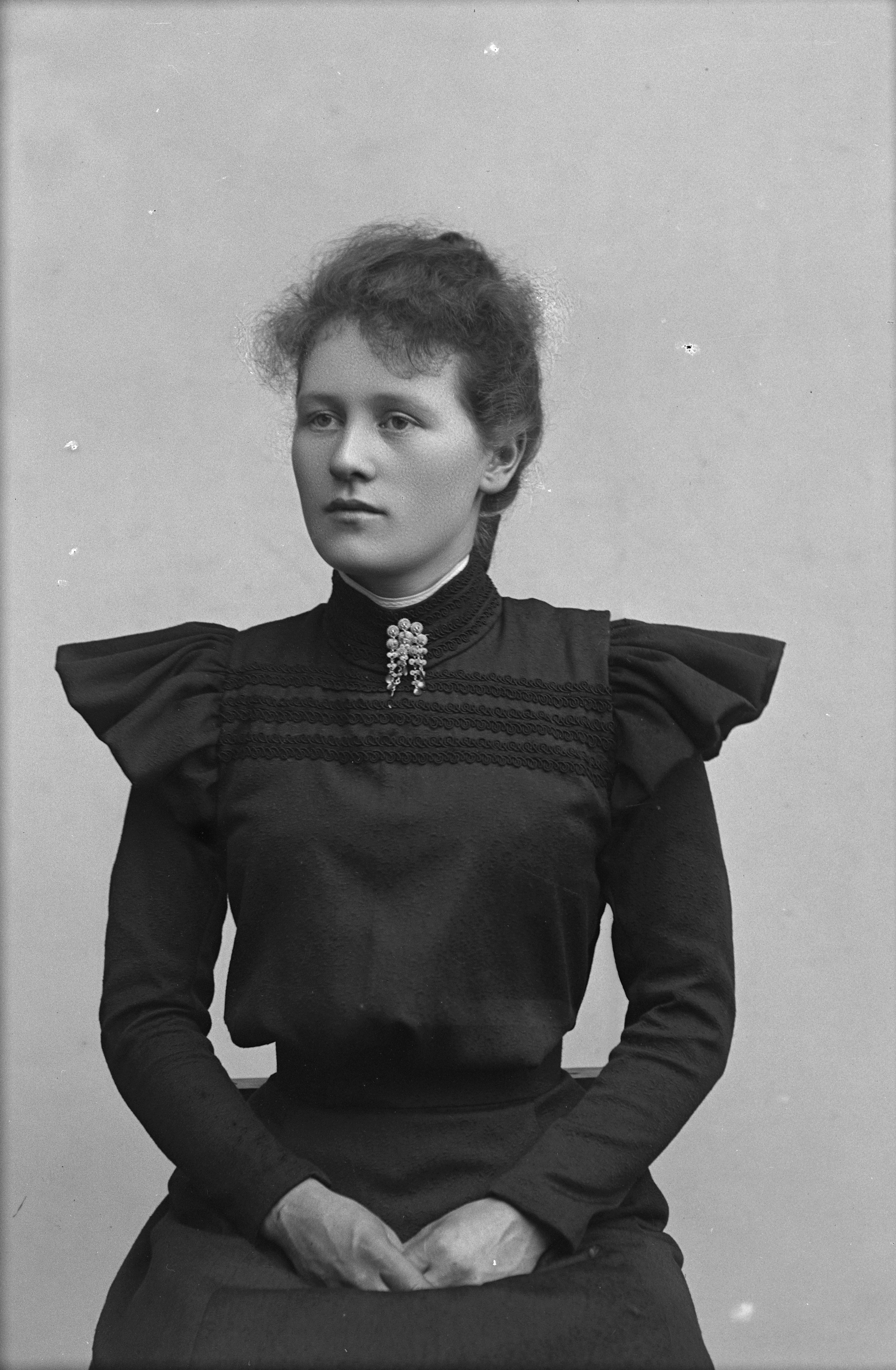 Beskrivning: Porträtt halvfigur av fröken Lindblad.