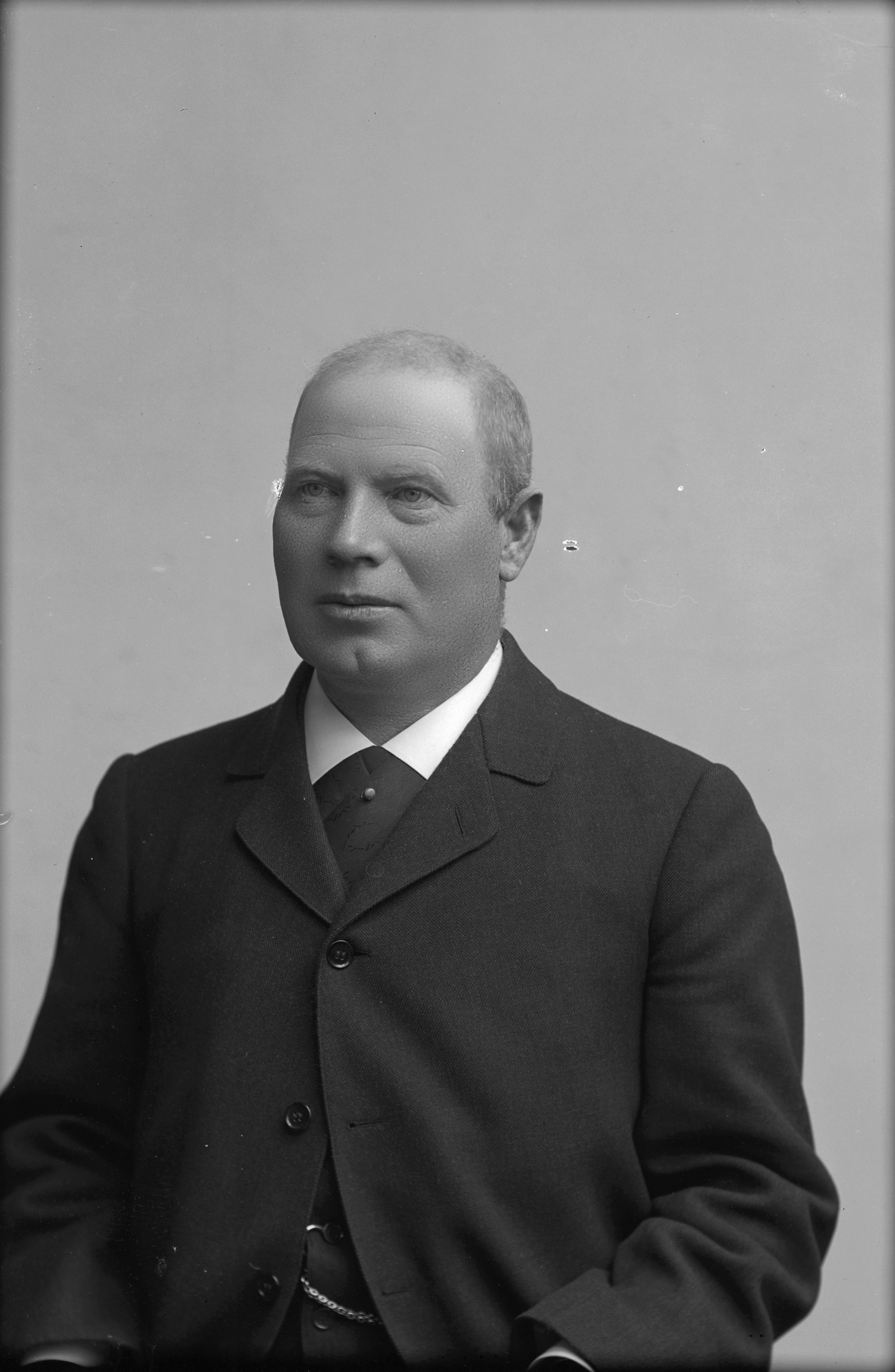 Beskrivning: Porträtt i halvfigur av handelsbokhållare Johan August Lindelöf.