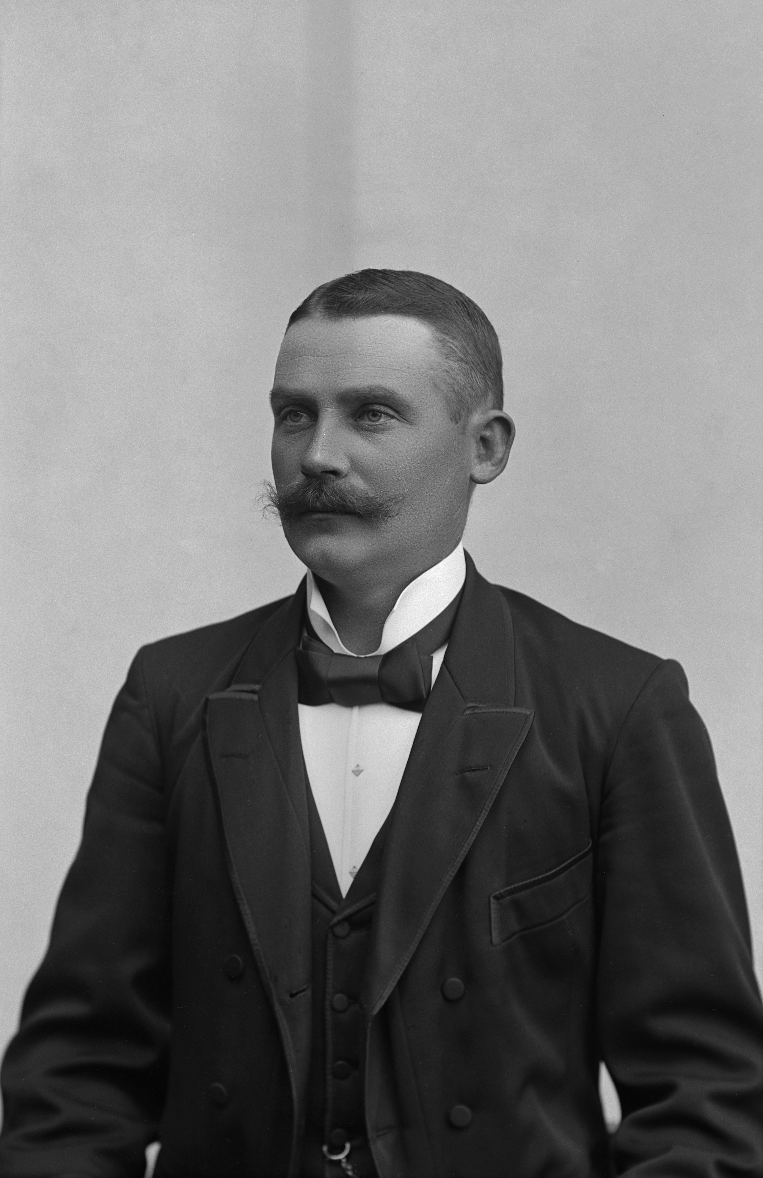 Beskrivning: Porträtt i halvfigur av herr Malmquist.