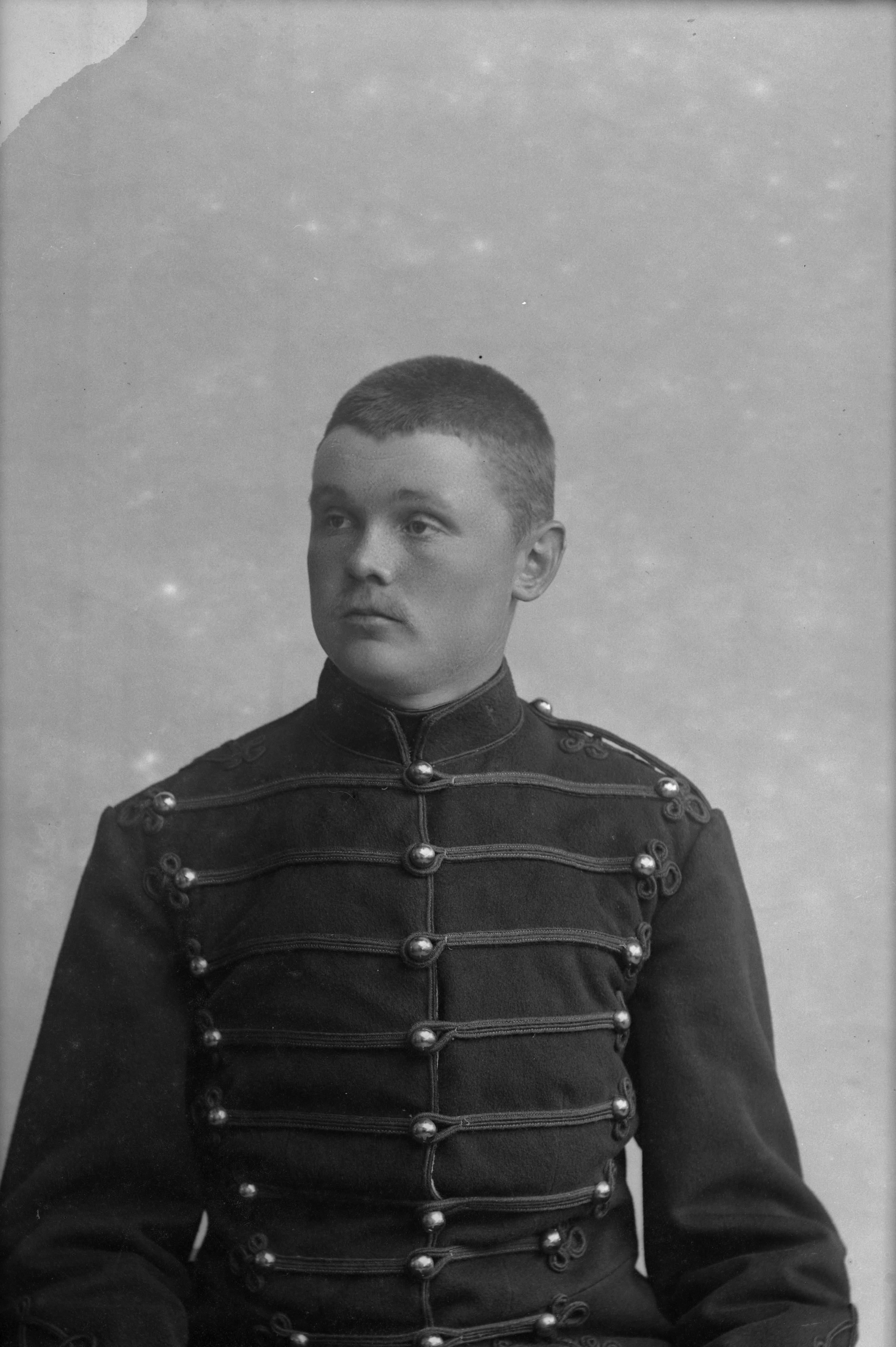 Porträtt i halvfigur av E. Rosengren, iklädd militäruniform.