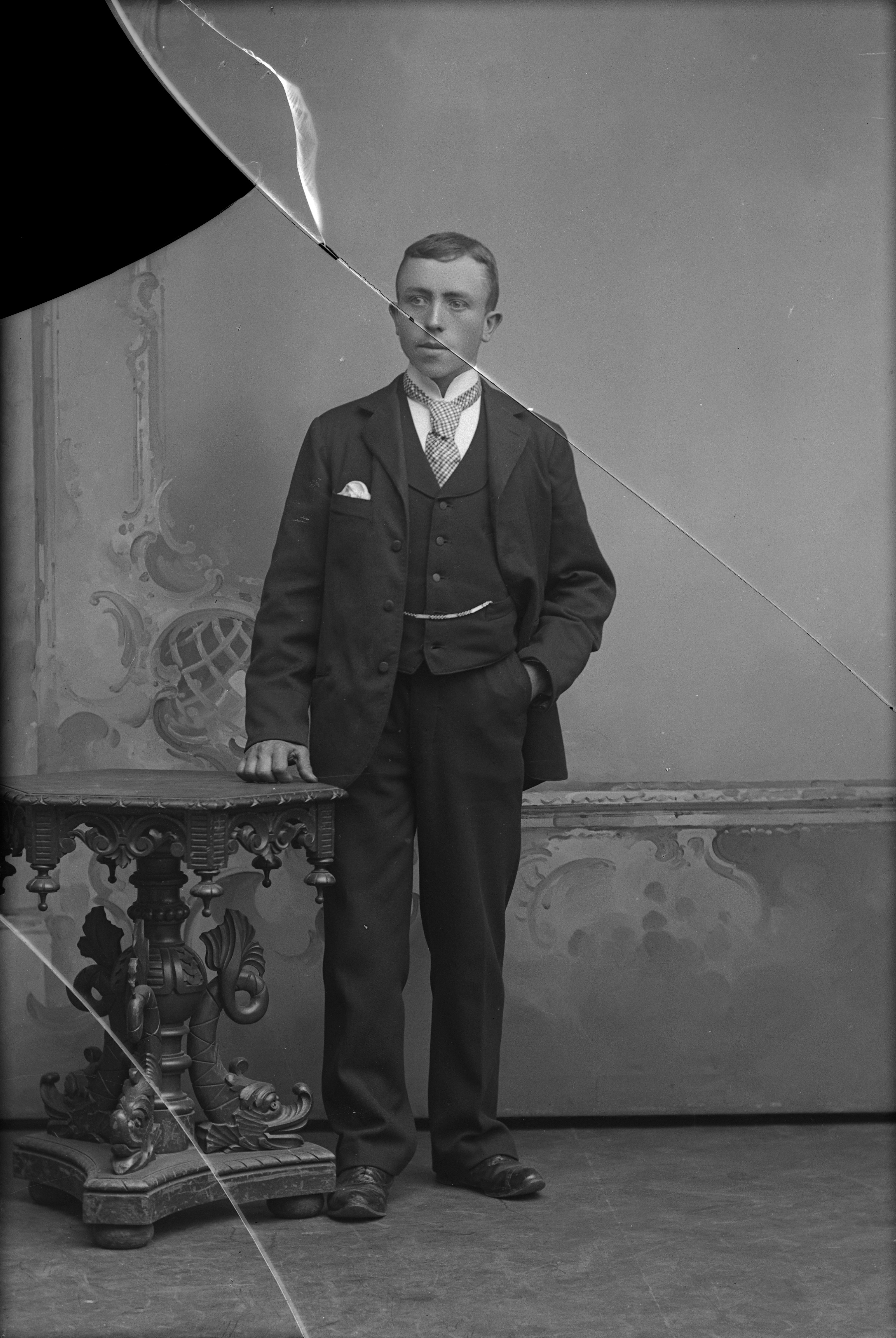 Beskrivning: Porträtt helfigur av R. Fredriksson.