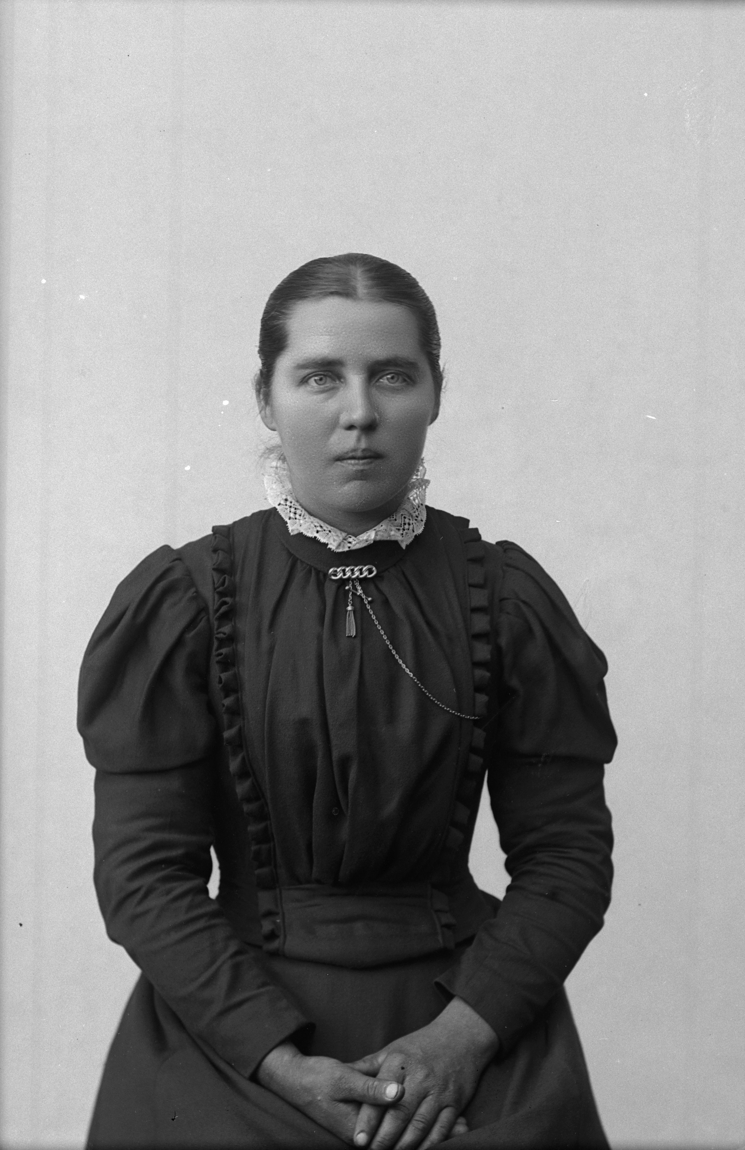 Beskrivning: Porträtt i halvfigur av Hanna Persson i Lövestad.
