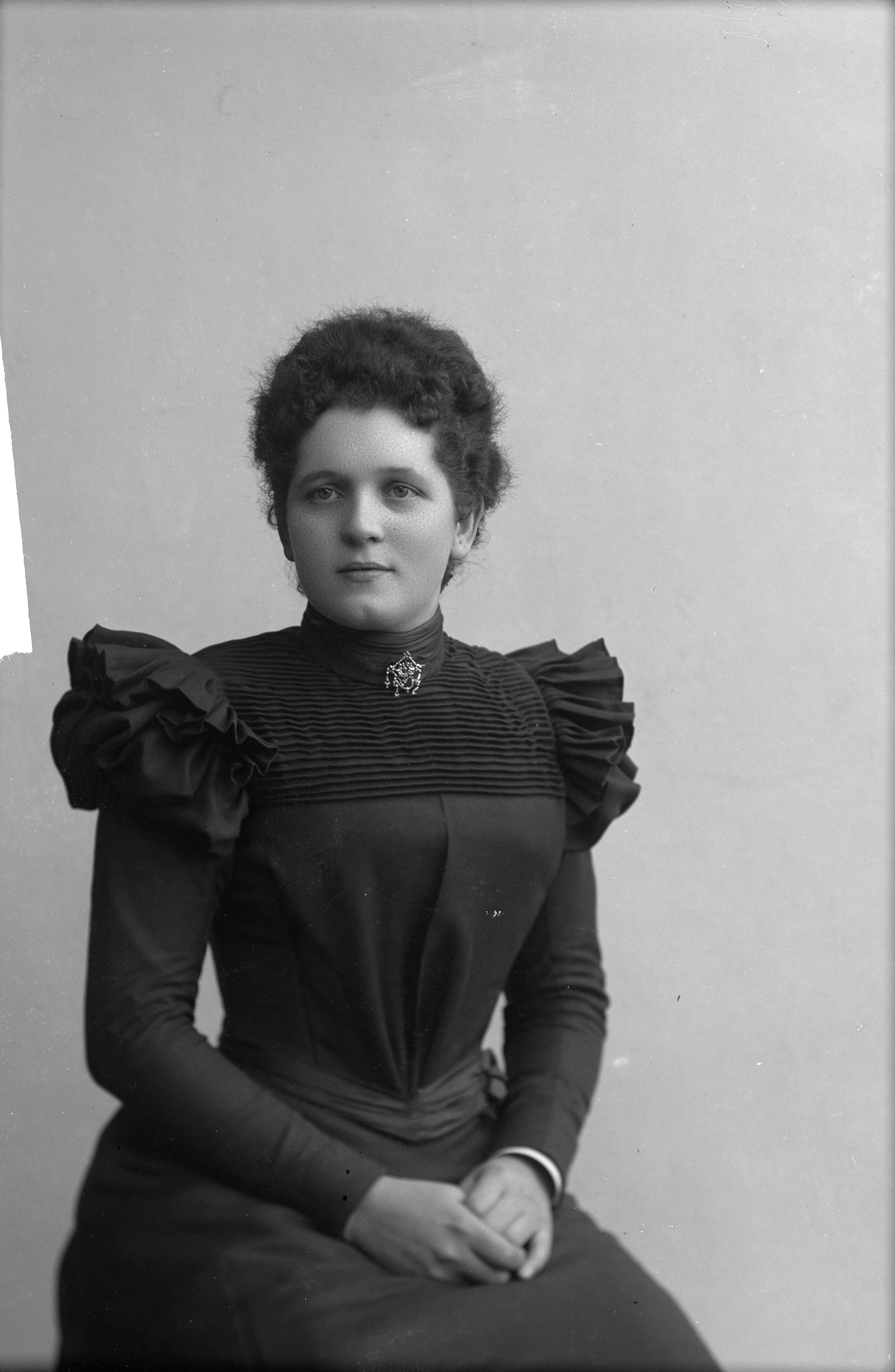 Beskrivning: Porträtt i halvfigur av Ebba Rosenborg.