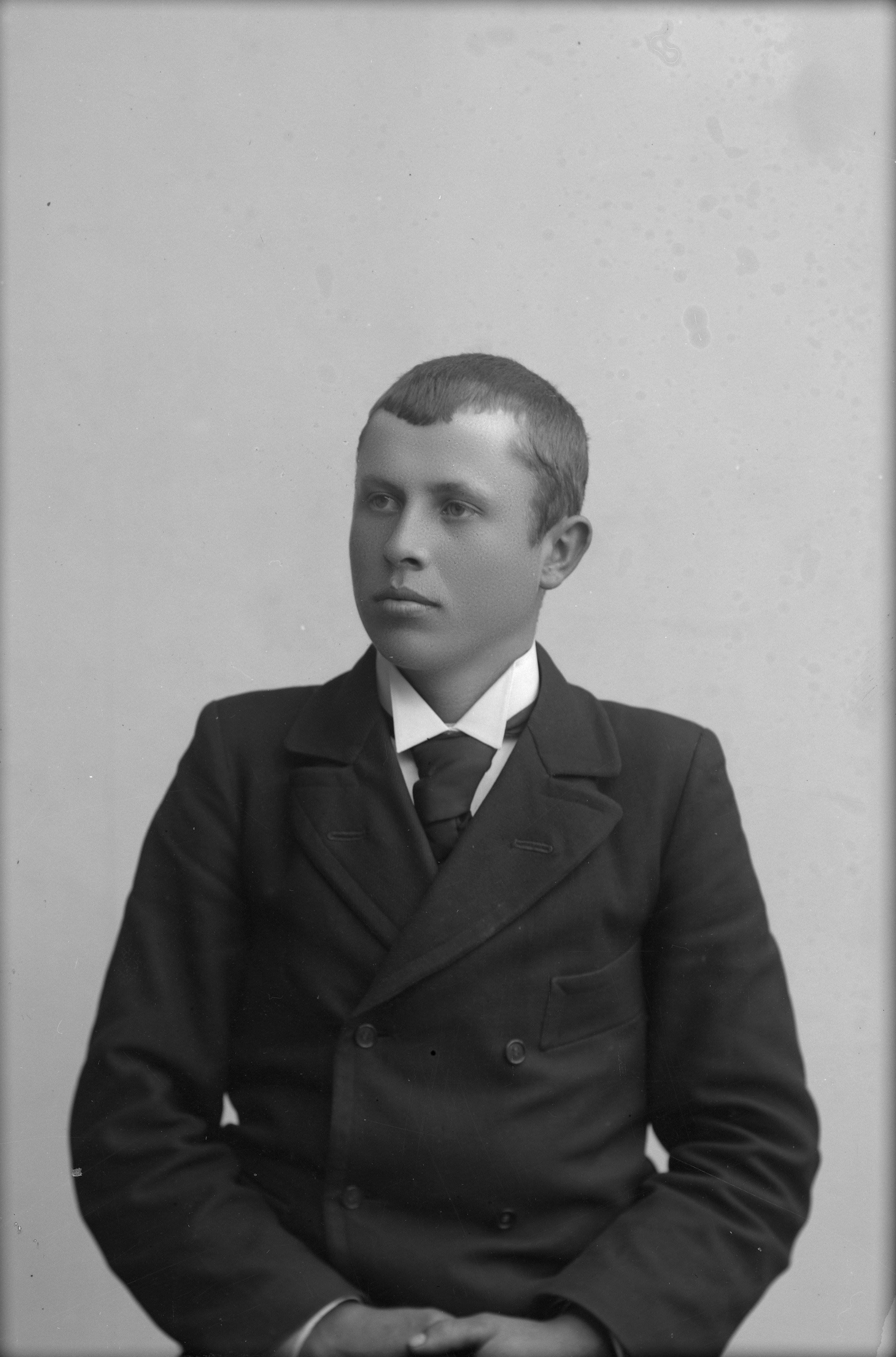 Beskrivning: Porträtt i halvfigur av Oscar Ahlström /Kvidinge.