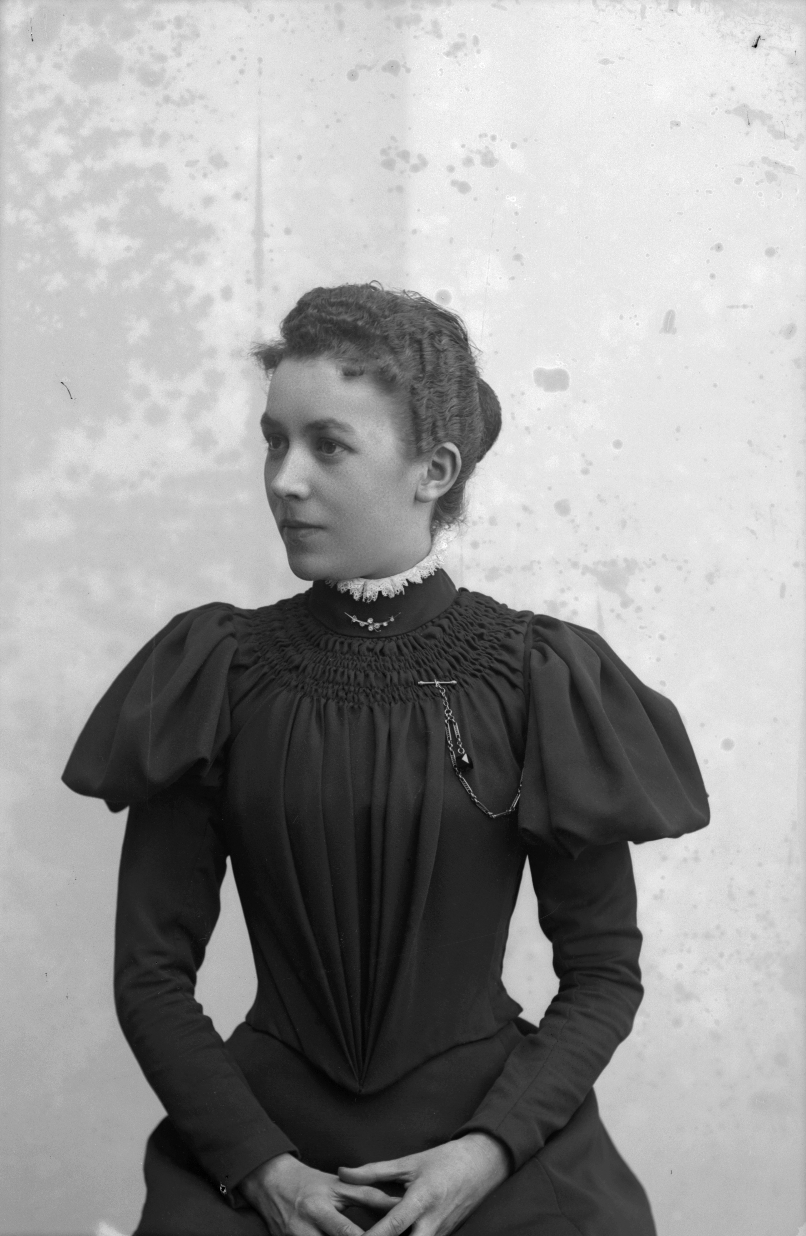Beskrivning: Porträtt i halvfigur av Augusta Cronquist.