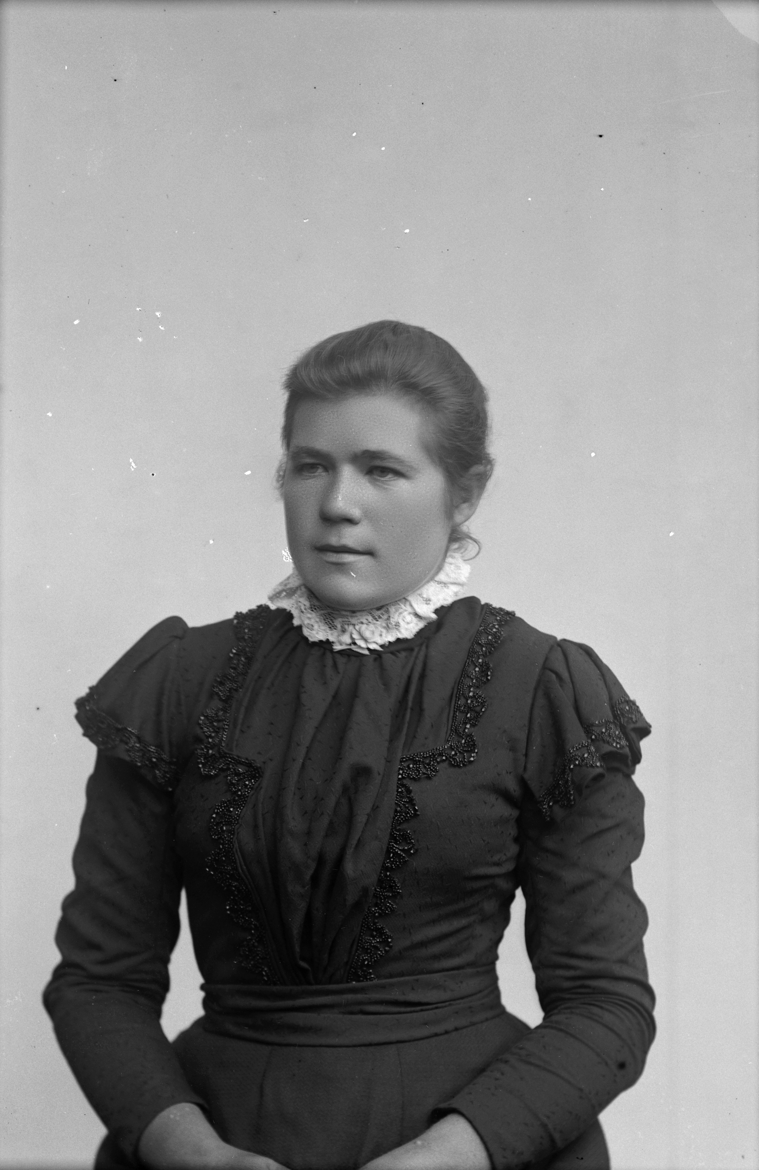 Beskrivning: Porträtt i halvfigur av Gerda Hansson.