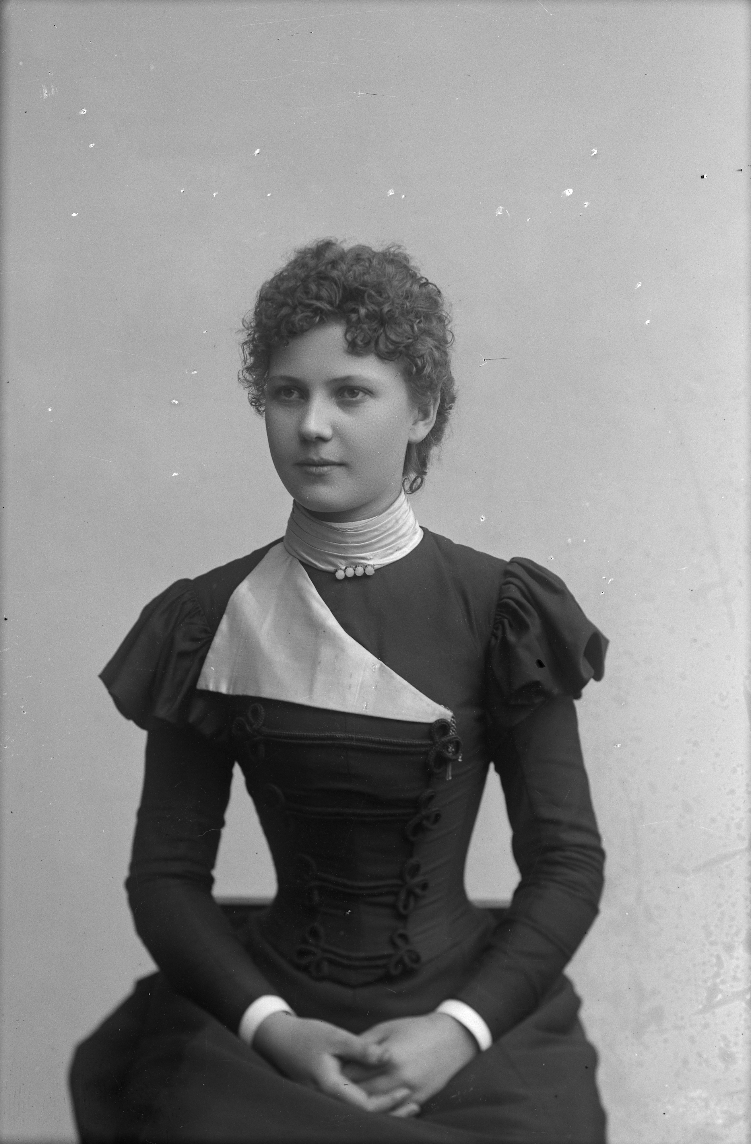 Beskrivning: Porträtt i halvfigur av Hilma Andersson.